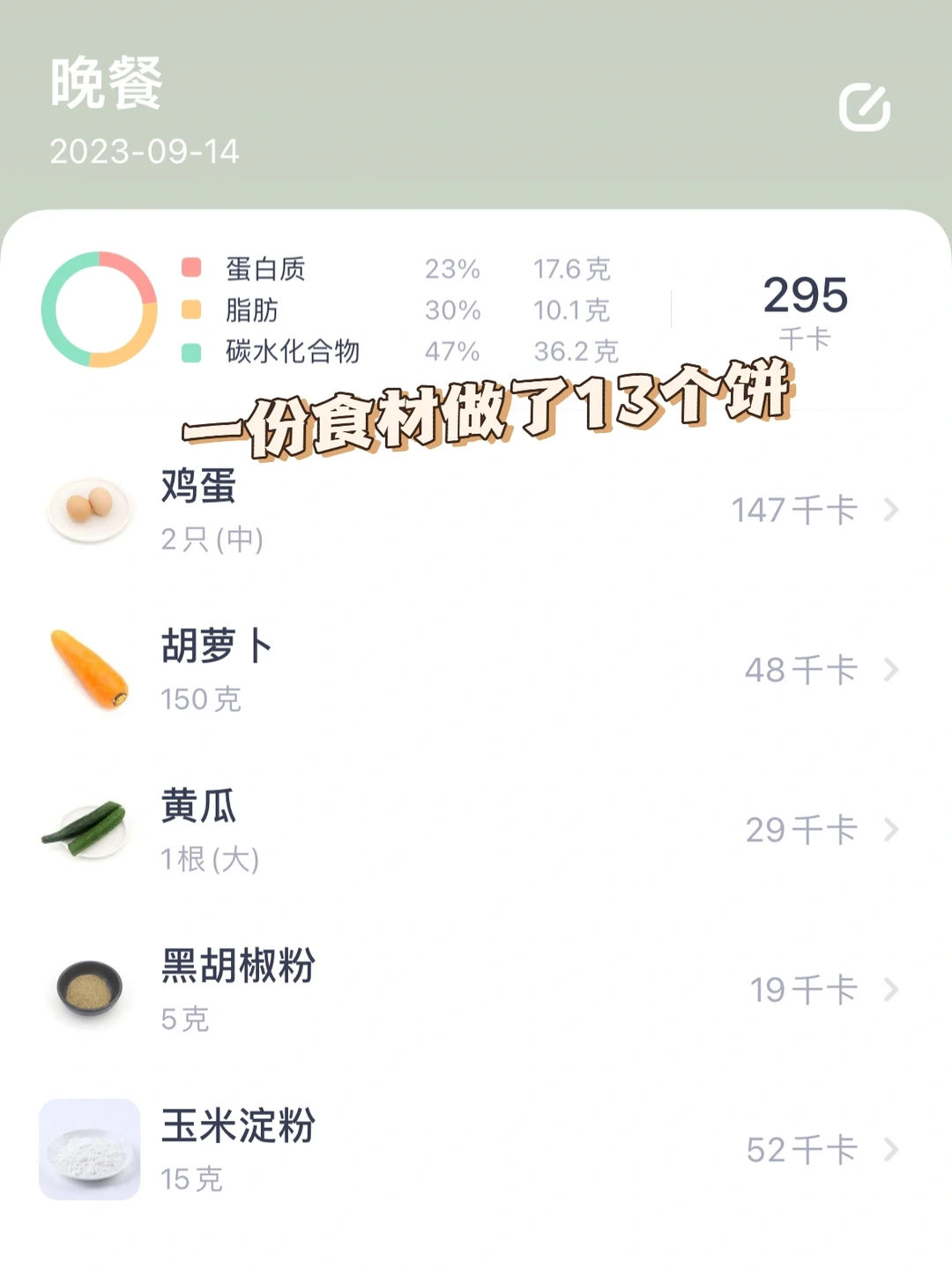 低卡胡萝卜青瓜鸡蛋饼真的泰香了,外焦里嫩,低卡低脂,青瓜的清爽再加上浓郁的蛋香味,好吃又掉秤,饱腹还强,一大盘两人份也才200多大卡!一个饼才20大卡,[暗中观察R]减脂期的姐妹们可以放心炫~ [种草R]食材:鸡蛋、青瓜、胡萝卜(2~3人份) [种草R]做法:如图所示~ [斜眼R]更多的减脂餐在往期笔记~