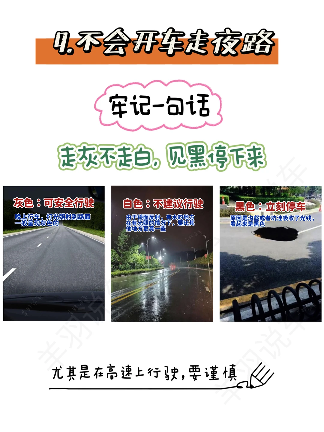 9⃣️不会开夜车,夜里出行千万要记住一句话,走黑不走白,见黑停下来