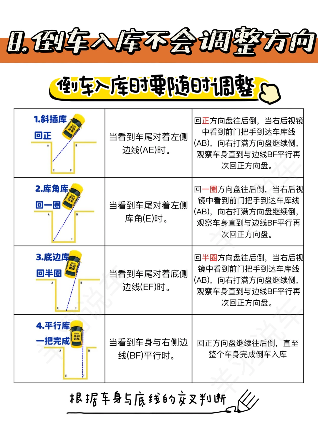 8⃣️倒车时不知道如何调整车尾,就导致越倒偏离越远,其实就是没有掌握打方向盘的技巧