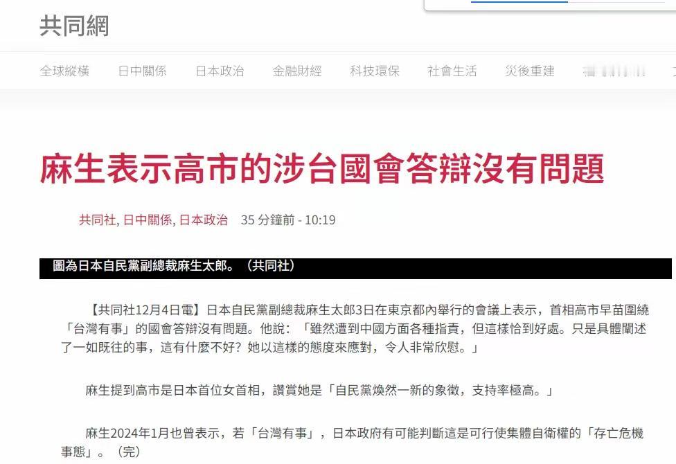 麻生太郎近日狂言,尽显东瀛右翼狼子野心!妄图染指台海、挑衅一个中国原则,实乃军国主义阴魂不散!我要奉劝某些人:勿忘历史疮疤,中国人民维护主权之意志如钢铁长城!若一意孤行,必撞得头破血流!