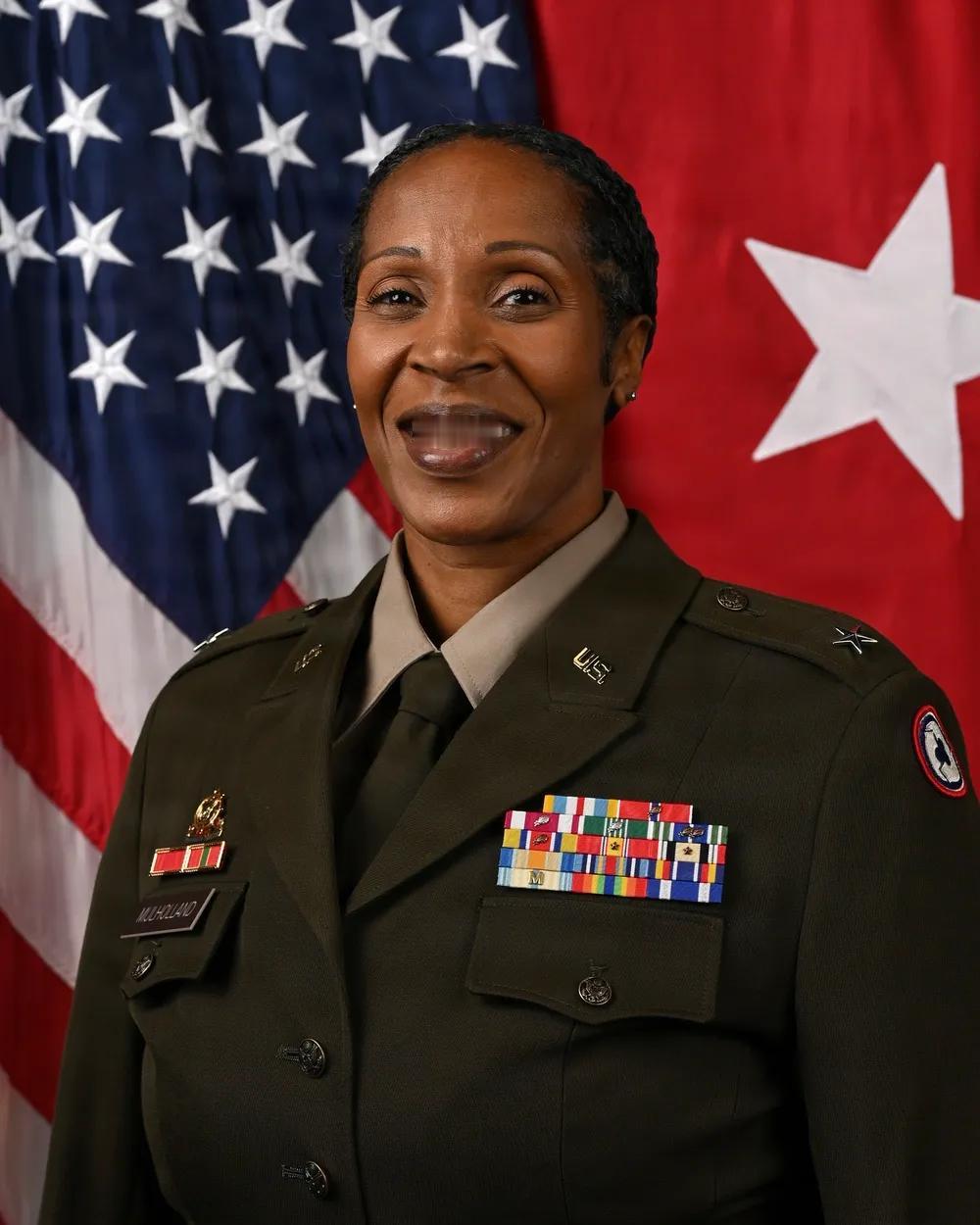 美军为数不多的黑人女性准将。 准将安托内特·C·穆尔霍兰德(Antionette C. Mulholland)毕业于美国军事学院,担任运输官,并在科罗拉多州卡森堡第四步兵师第三旅作战队任职排长及助理S1。完成上尉职业课程后,穆尔霍兰德准将被分配到华盛顿州刘易斯堡,并曾支援伊拉克自由行动(2004年),担任第593军支援组支援行动运输官。部署后,穆尔霍兰德准将于2006年接管并部署第497运输连,以支援伊拉克自由行动。 在担任连指挥官后,穆尔霍兰德准将被任命为堪萨斯州利文沃斯堡“西耶拉作战组战斗指挥训练计划”的运输观察员控制官。2010年,她被分配到第一后勤旅、第一步兵师,并部署到科威特,担任综合支援官,随后担任供应与服务分支主管,支持新黎明行动。2012年,穆尔霍兰德准将转入后备役并指挥多个部队。2019年,她作为副指挥官及基地指挥官,随第207地区支援组部署到伊拉克阿萨德空军基地,支援天赋决心行动。 在最近的一次部署中,穆尔霍兰德准将担任联合联合特遣部队——非洲之角的物流总监(J4),支持在吉布提、索马里、肯尼亚和埃塞俄比亚的联合部队行动。 穆尔霍兰德准将的指挥经历包括查尔斯顿,西弗吉尼亚州第一旅、94训练师团(FS)司令;以及北卡罗来纳州温特维尔第362军需营(石油支援)司令。其主要参谋任职包括吉布提莱蒙尼尔营的联合联合特遣部队——非洲之角物流总监。 穆尔霍兰德准将毕业于运输官基础课程、联合后勤高级课程、联合兵种与参谋学院、指挥与参谋学院,以及美国陆军战争学院。她拥有纽约理工学院工商管理硕士学位,以及美国陆军战争学院战略研究硕士学位。在民间职业中,穆尔霍兰德准将担任弗吉尼亚州亚历山大市国家科学基金会的IT项目经理。 穆尔霍兰德准将个人荣誉包括国防高级服役勋章、青铜星勋章(2次)、优良服役勋章(6次)、陆军嘉奖勋章(6次)、陆军成就勋章(3次)、武装部队远征勋章、伊拉克战役勋章(2次)。 穆尔霍兰德准将已婚,配偶为格雷戈里(Gregory),他们组成了一个拥有三个孩子的融合家庭。