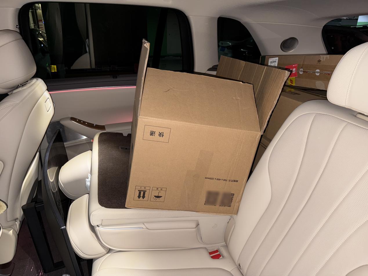 八个纸箱子,两台电脑机箱,一个打印机,以及其他零碎物。公司搬家刚好用全新问界M7拉东西,作为5座版本,这个装载量不错,第二排放倒一边之后还可以一顿塞,后排还能坐个人。并且全放平之后平整度也不错,下次试试露营睡车?大空间+5座的香今儿是感受到了