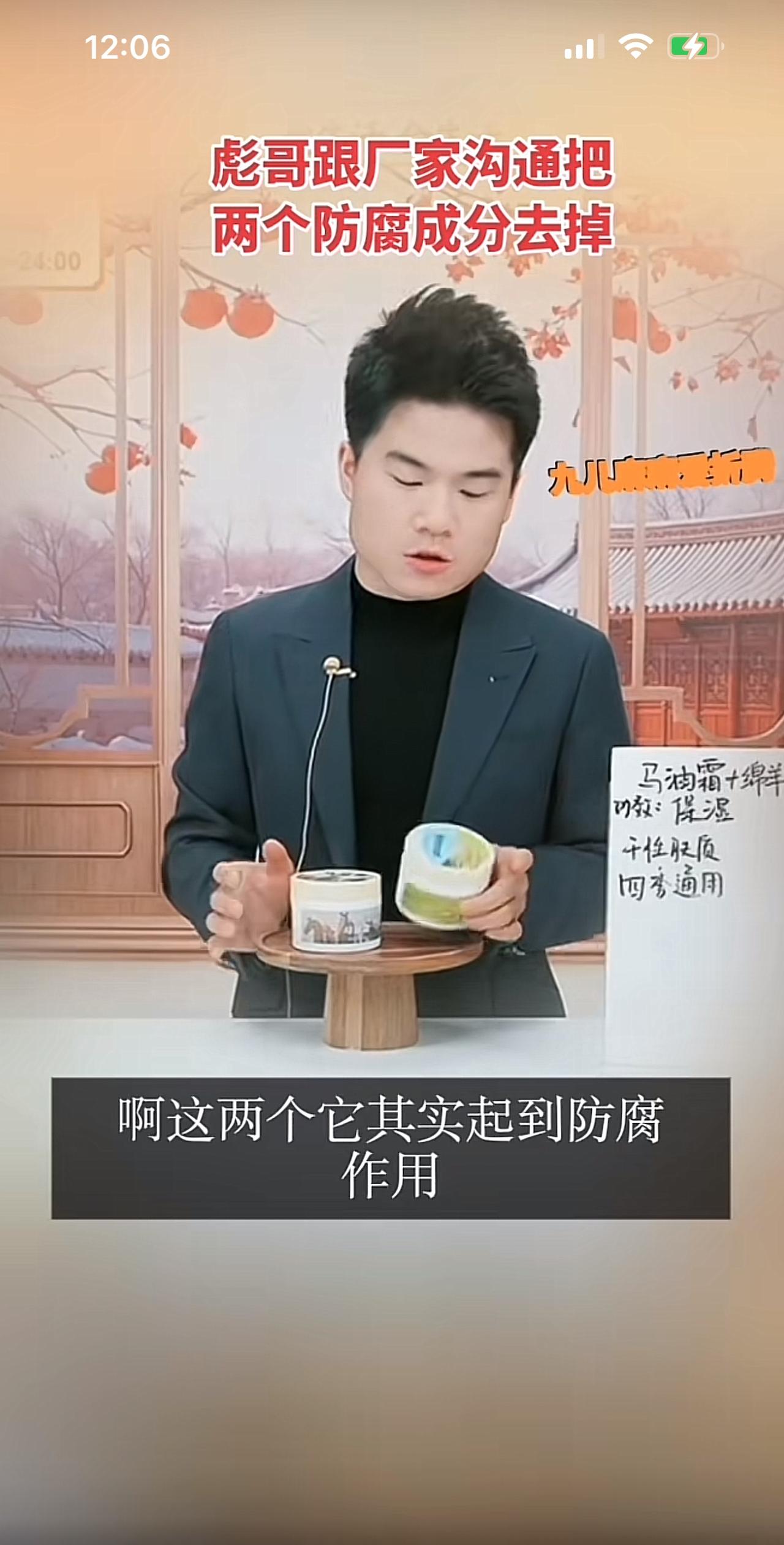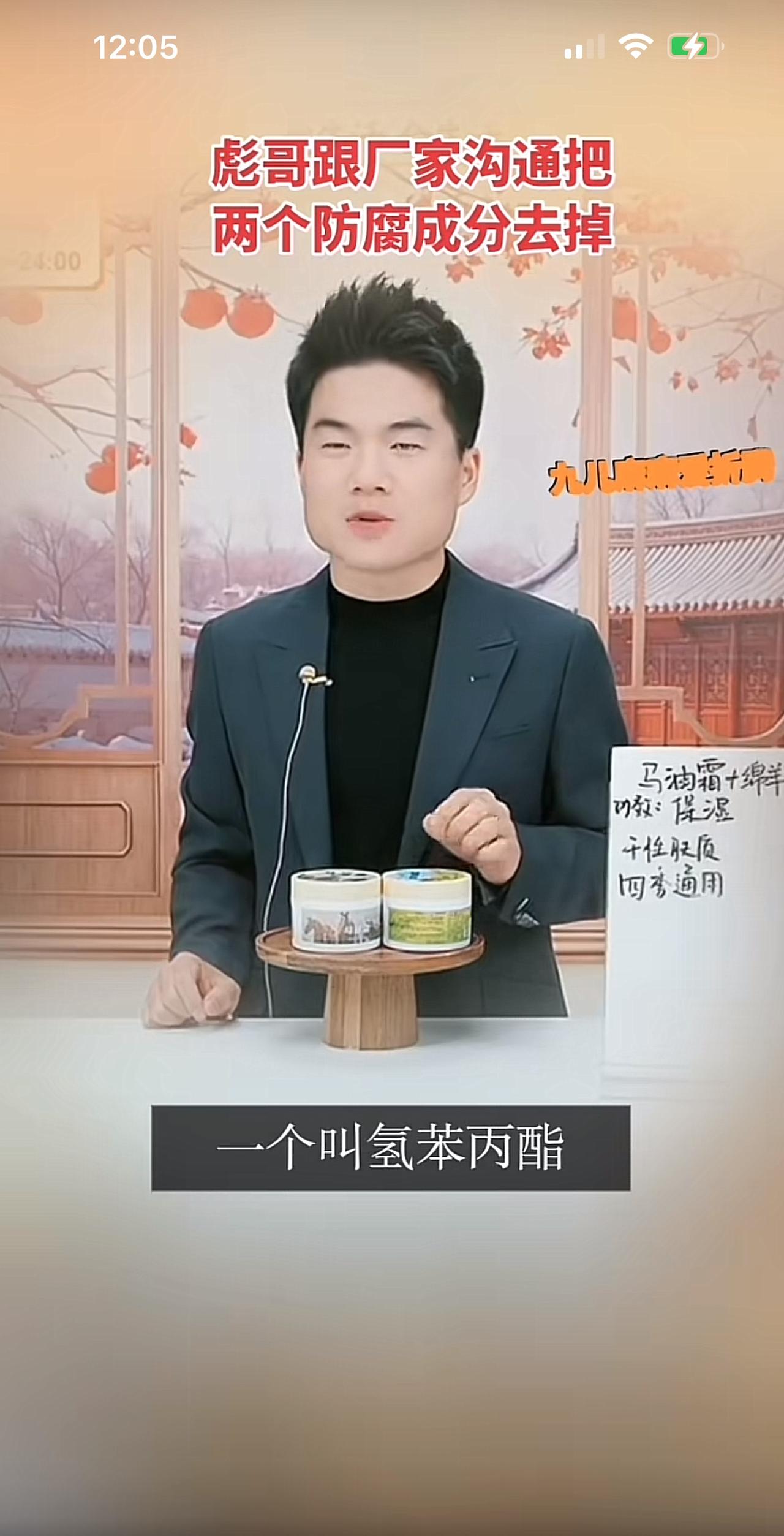 “马油”是与辉同行的爆款, 去年新疆阅山河外场上了直播间以后, 就一发不可收拾, 每次上架就被抢空。 这款新疆的马油和绵羊油, 价格不贵, 但是冬天用来做身体乳效果非常好, 用来当护手霜也很好, 所以一直畅销。 应消费者的要求, 马油和绵羊油一直在更新升级。 宇辉昨天晚上直播的时候说, 马油版本又更新了, 其中“氢苯甲酯”和“氢苯丙酯”两种含有防腐成分的都去掉了, 这样保质期虽然短了, 但是用起来更健康更安全, 大家可以放心购买。 这就是与辉同行的品控, 一直都以消费者的安全考虑。 诚信为本, 以消费者为中心, 这才是宇辉想做的事, 也是我们喜欢与辉同行购物的原因。 与辉同行购买, 只有不合适自己的, 不担心质量和售后问题! 董宇辉主要把品控做好, 与辉同行的业绩就一定是势如破竹, 步步高升。 散会! 董宇辉 与辉同行 新疆朵萃马油霜 润肤马油