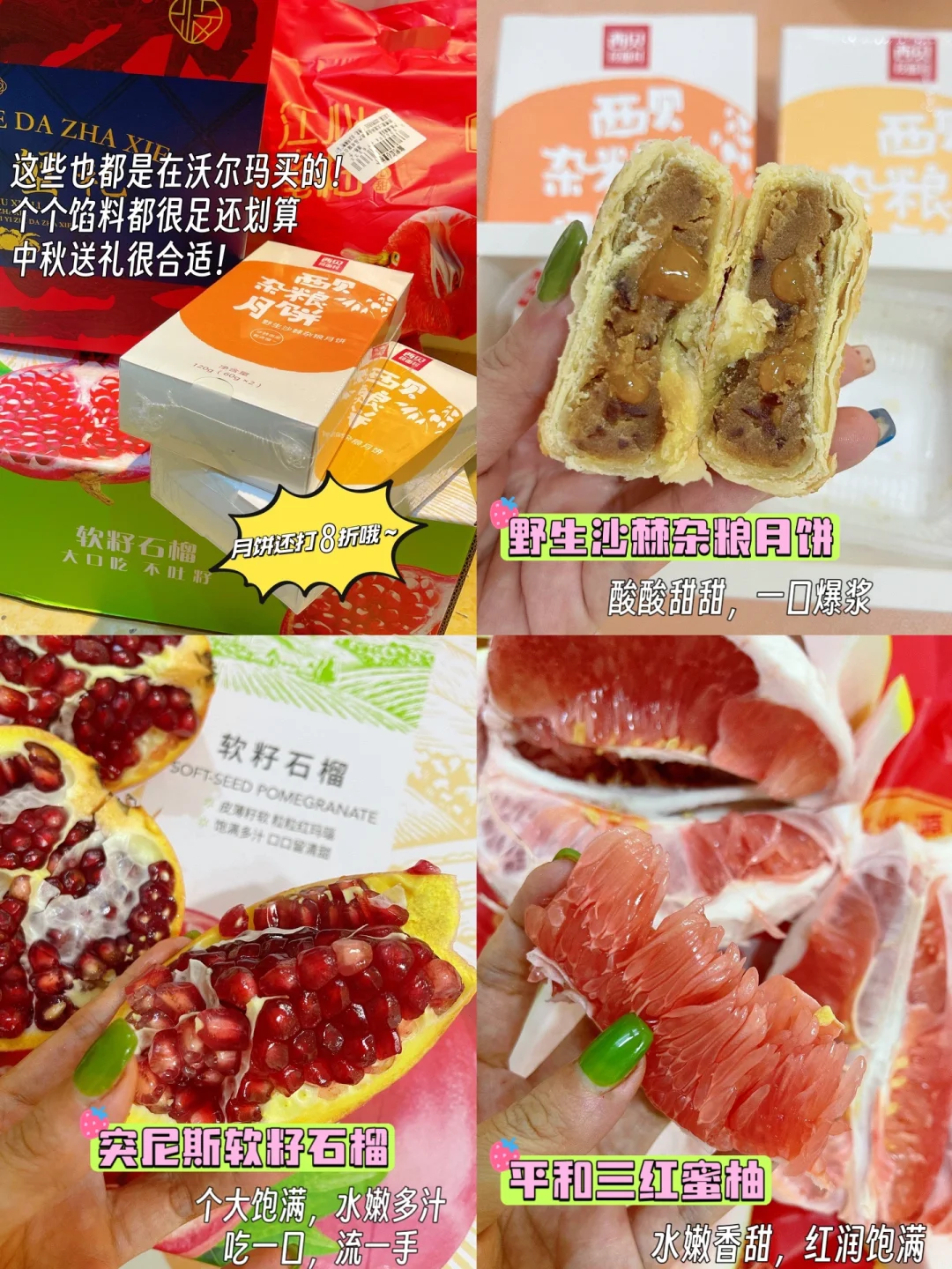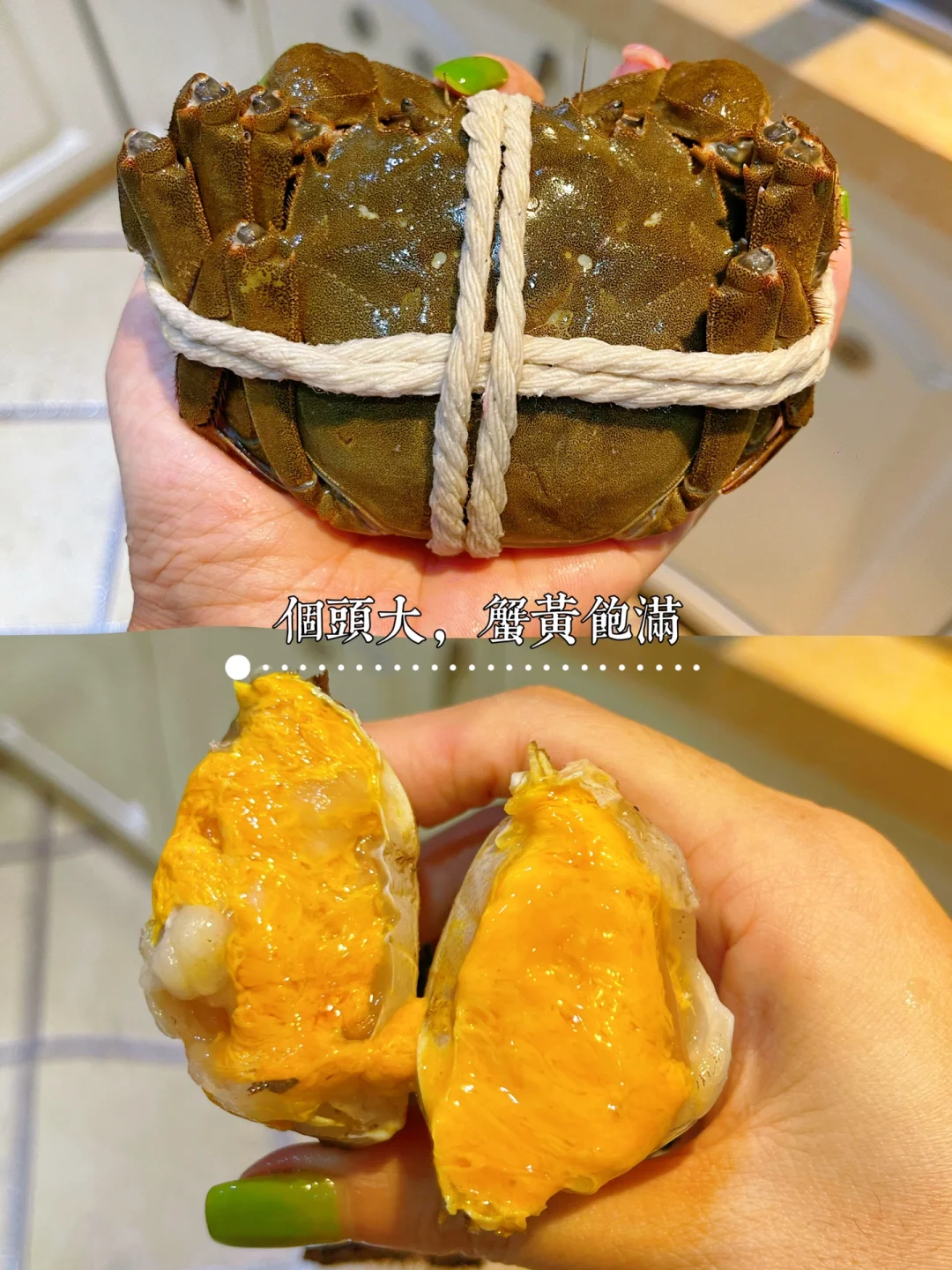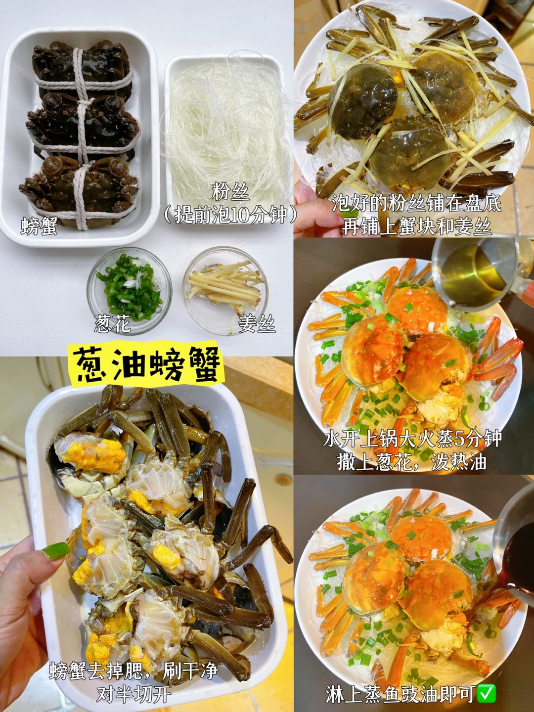 🦀️秋日的第一口螃蟹你吃了吗? 今天分享2⃣️种螃蟹做法!这样做蟹有料到吃完还想吃,收藏起来在中秋大展身手吧~ 1⃣️【螃蟹炒年糕】 📝材料:大闸蟹,年糕,姜葱蒜,小米辣 【做法】: ✅螃蟹去腮,刷干净,对半砍开,带黄那面裹淀粉 ✅热锅热油,把裹了面粉那面朝下煎黄,盛出备用 ✅用锅里底油爆香姜蒜小米辣,倒入螃蟹翻炒 ✅调个料汁:1茶匙盐+1茶匙糖+2勺生抽+1勺蚝油+半碗水,倒入锅中,再加入年糕,中小火焖煮5分钟,最后撒入葱段即可👌 2⃣️【葱油螃蟹】 📝材料:大闸蟹,粉丝,姜葱 做法参考图片,超简单,有手都会做[赞R] 🦀️秋天的第一顿大闸蟹,论有料还得是沃尔玛! 买了阳澄湖大闸蟹,蟹黄多到爆! 包有黄有膏,包足斤足两! [斜眼R]还顺便买了些月饼水果啥的,皮薄馅足,品类丰富啥都有[赞R][赞R][赞R] 中秋送礼稳稳拿捏了!