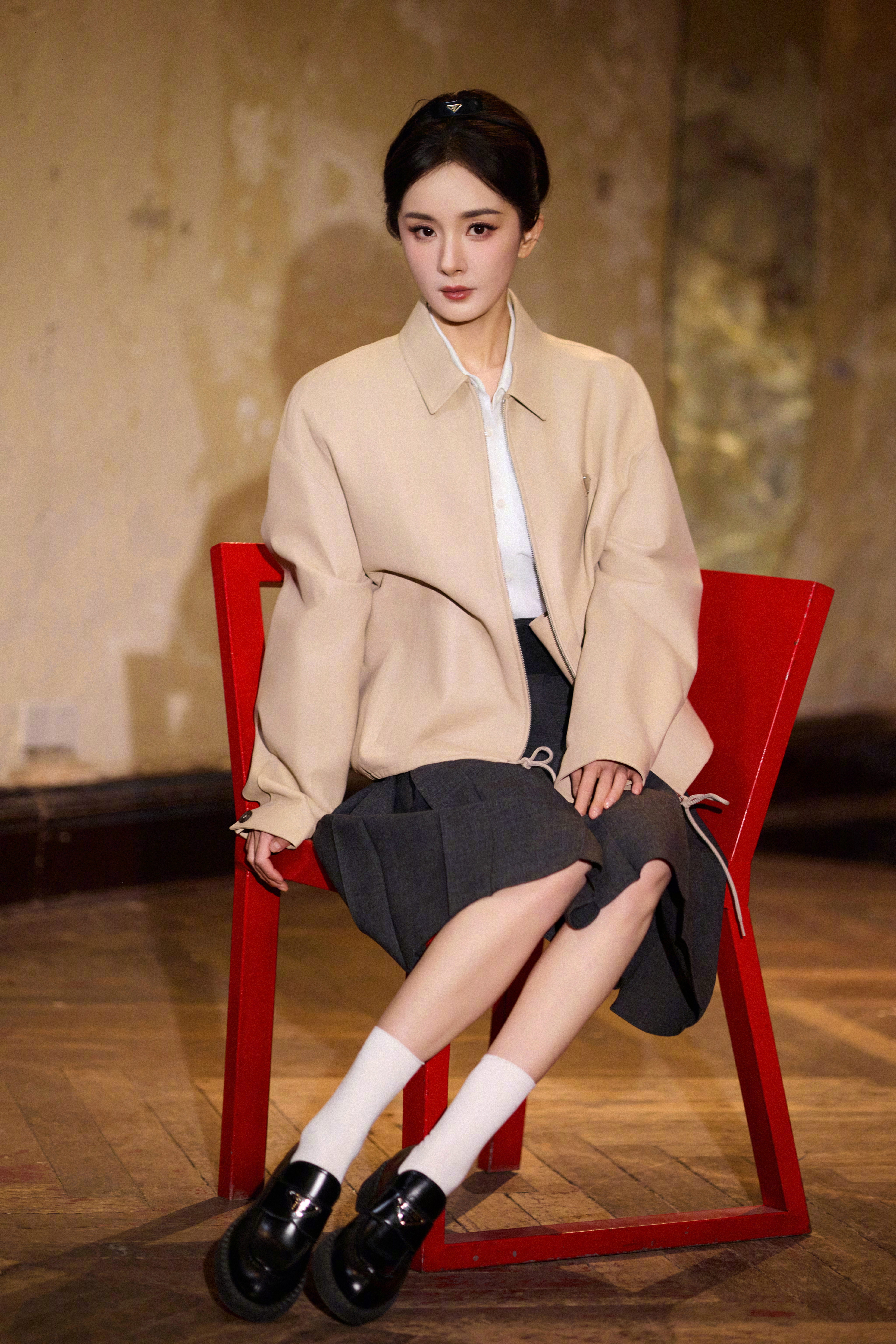 PRADA 幂 is coming!杨幂 × T风格论坛 造型发布,经典半裙套装外搭标志性夹克,简约文艺的全新普拉达女郎时髦登场!
