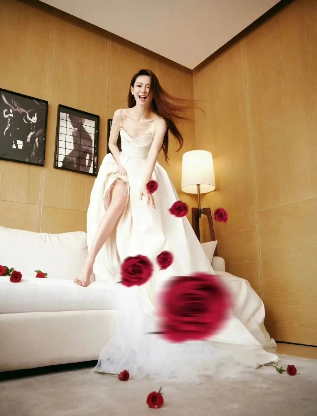 气质女神李冰冰,七零后演员,现在也是阿姨年龄了,酒红色丝绒开叉裙,依然...