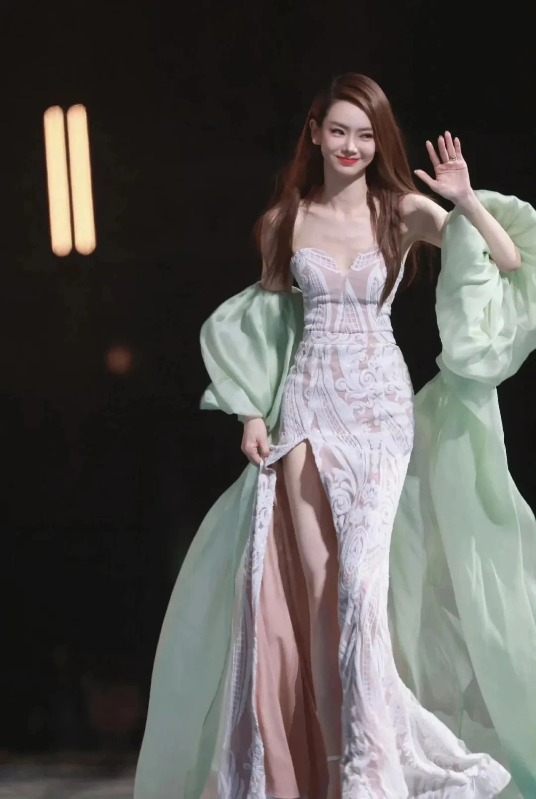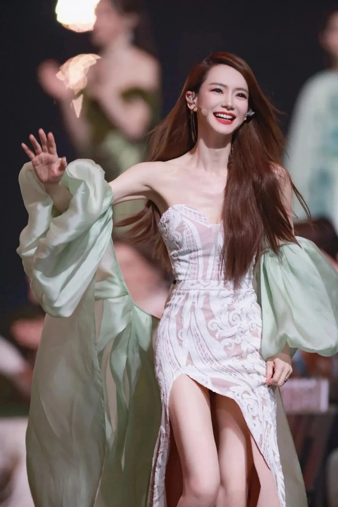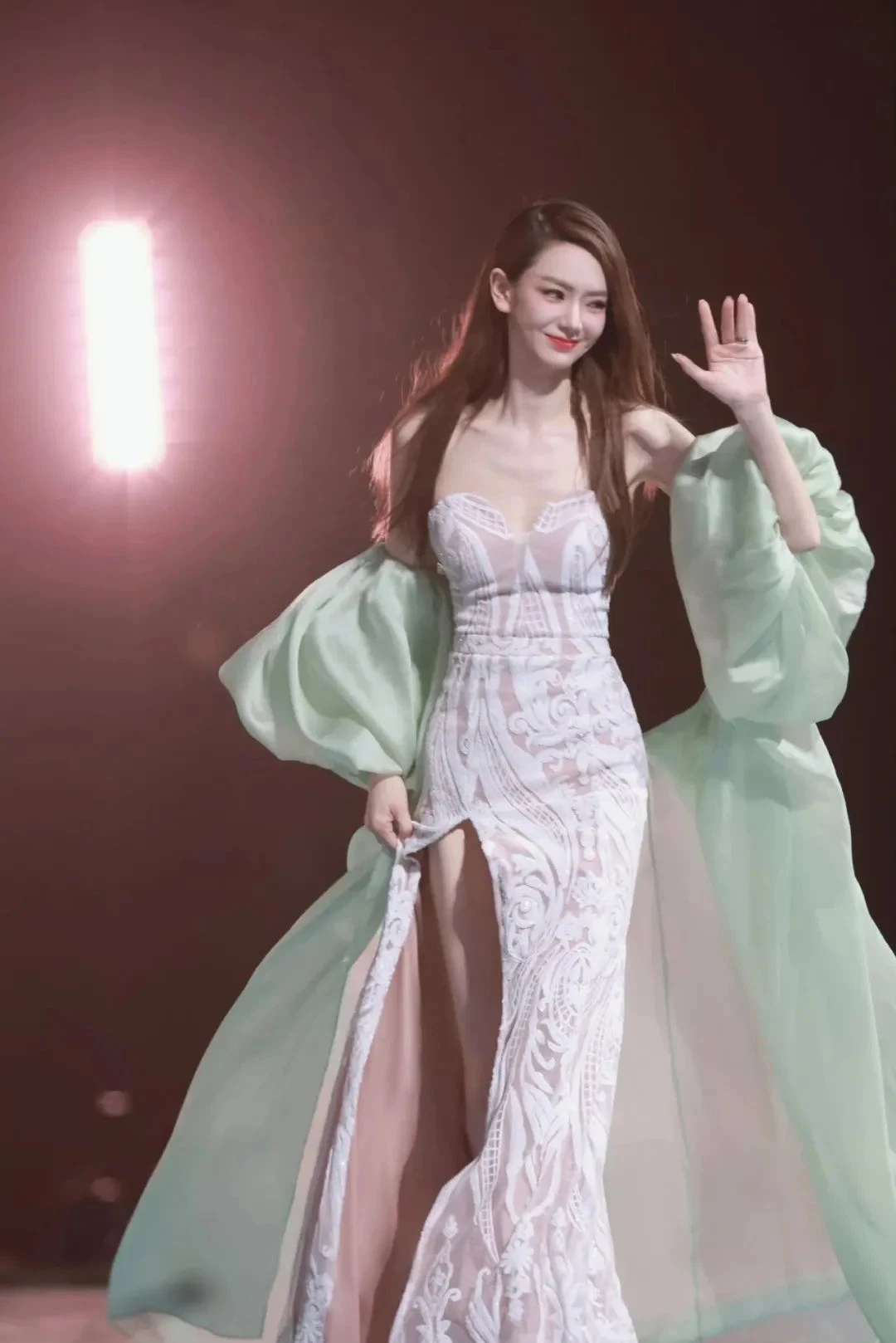 创业者大会 戚薇,抹胸开叉裙,好美呀 大长腿美女