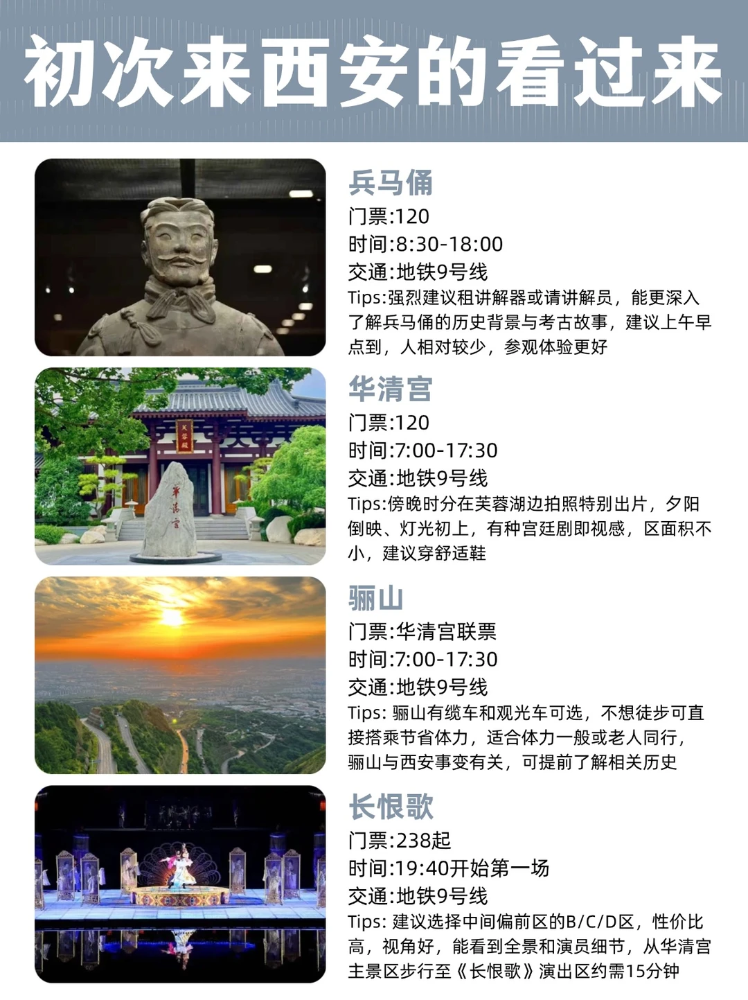 ✅ 兵马俑需提前预约(门票120元),建议一早出发避人流