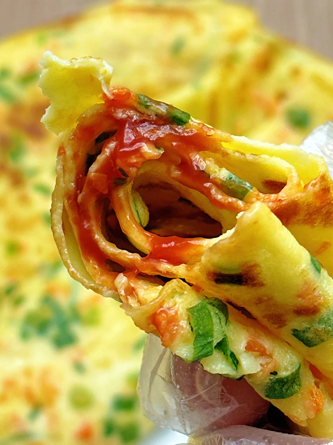 软软的鸡蛋饼就做好了,一家人都够吃,营养又方便