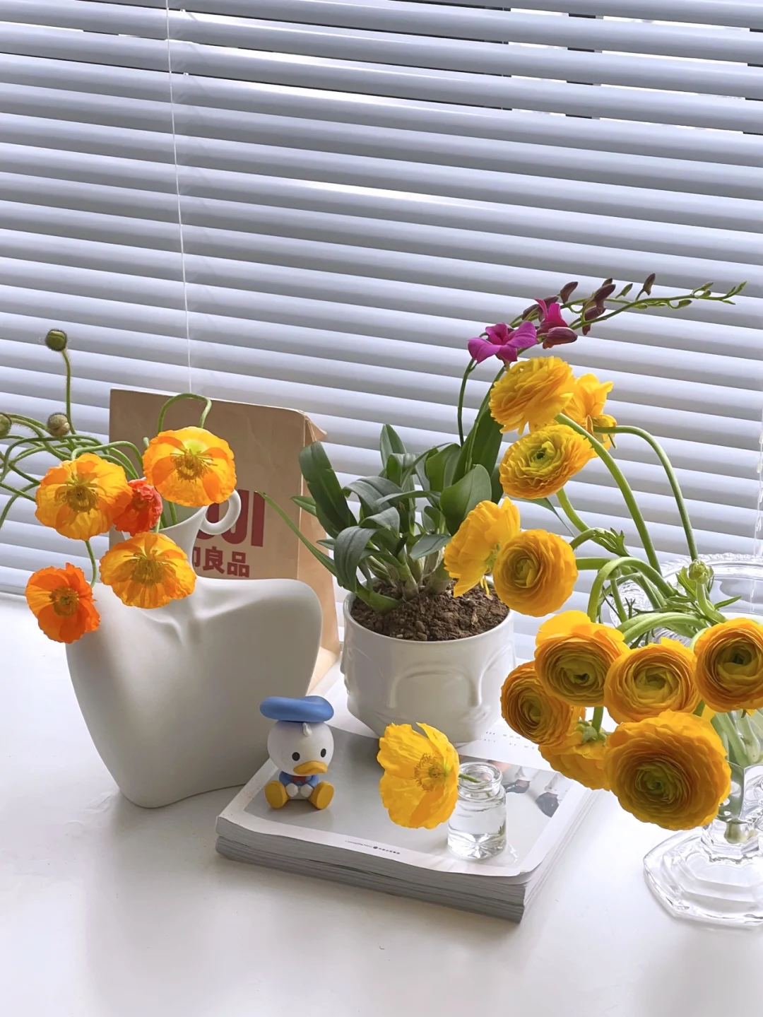 月底就过年了,朋友圈看见大家都在买年宵花。 上周也陆陆续续网购了一些鲜花。 早上起床在客厅吃早餐时,看着花瓶里的鲜花心情是美好的。 - 虞美人花苞插花瓶两天终于绽放了几朵。 洋牡丹一直很喜欢,一打13.5,分开插了两个花瓶 腊梅应该是可以保持挺久。 蝴蝶兰与石斛兰 一对佳人。