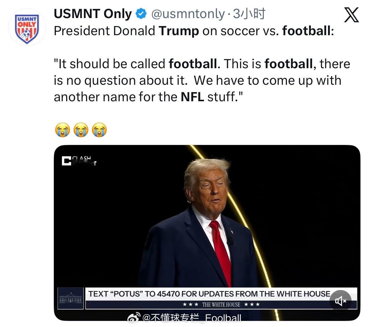 惊闻作业抽签,川普大放厥词,要NFL改名因为那不是football但他一个月前刚受邀参加过NFL的活动世界杯分组世界杯抽签世界杯 【足球通年卡】咪咕视