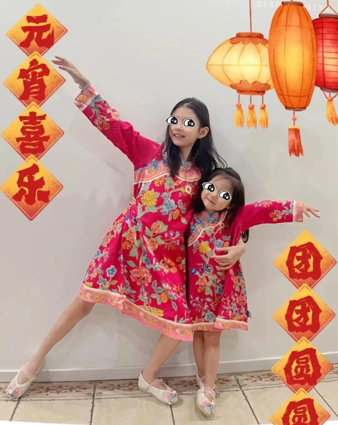 张梓琳骄傲晒两个女儿,9岁胖妹已经是成人身高,看着能长到185!