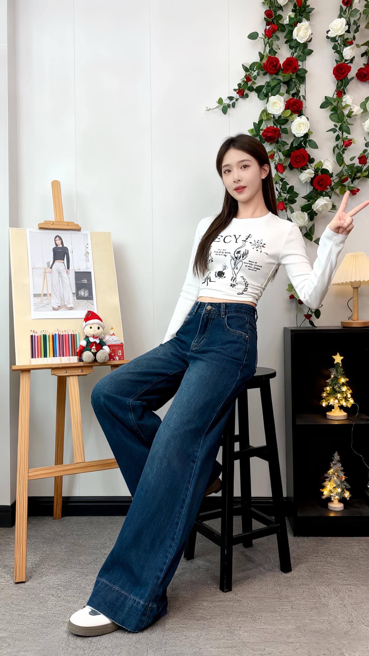 阔腿裤 ins穿搭 加绒牛仔裤 小个子穿搭 简约穿搭