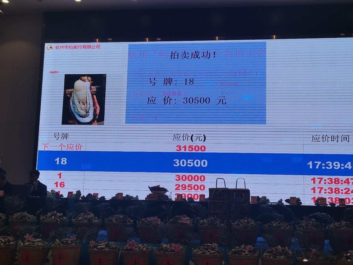 蚝美钦州潮听河海30500元成交!钦州蚝王拍卖所得全额捐赠公益事业。12月5日下午,2025年钦州蚝情节蚝王争霸赛暨首届蚝王拍卖会在天骄国际酒店圆满举办。来自钦州市的15家大蚝养殖公司、养蚝合作社及养蚝基地代表齐聚赛场,纷纷亮出自家培育的重磅“蚝王”,同台竞技、一决高下。本次蚝王争霸赛设置“冠军蚝王”“亚军蚝王”“季军蚝王”三大奖项,以及12名“优秀奖蚝王”。比赛现场,评委团围绕参赛个体成品蚝的重量、长度、宽度、厚度及美观度等核心维度,进行专业综合评比。经过多轮激烈角逐,广西港河生态农业有限公司养殖的大蚝脱颖而出——这只重3805克、长393毫米、宽128毫米、高115毫米的优质大蚝,以1741.53分的高分摘得本届争霸赛“冠军蚝王”桂冠;钦州市顺达海水养殖有限公司斩获“亚军蚝王”,钦州市恒浩水产养殖有限公司获评“季军蚝王”;钦州市维丰农业有限公司、钦州市钦南区龙门水寨餐饮服务俱乐部等12家主体荣获“优秀奖蚝王”。争霸赛落幕之后,钦州“蚝王”首届公益拍卖会紧接着精彩启幕。活动对评选出的“冠军蚝王”“亚军蚝王”“季军蚝王”、5名“优秀奖蚝王”及多款优质精品大蚝,按“价高者得”原则进行现场公开拍卖,吸引29家爱心企业及爱心人士踊跃参与竞拍。最终,冠军蚝王被久米建筑设计事务所(广西)有限公司成功竞得,成交价30500元;亚军蚝王由广西丰实投资有限公司竞买入手,成交价24200元;季军蚝王被广西中地置业有限公司收入囊中,成交价10400元。浦北陈皮陈香世界钦州大蚝舌尖盛宴2025钦州蚝情节钦州身边事不可辜负的美食 钦州·钦州天骄国际酒店