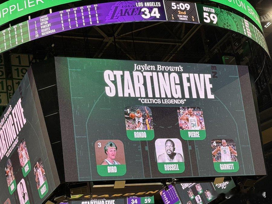 杰伦布朗心目中的凯尔特人队史最佳五人组,和我心中的名单不谋而合,相信这也是绝大部分绿军球迷心中的最佳阵容。 隆多、皮尔斯、伯德、加内特、拉塞尔。唯一可能引起争议的是一号位的隆多,会有人认为鲍勃库西比他更值得入选,我不反驳这种说法,但我认为巅峰时期的隆多也不差。