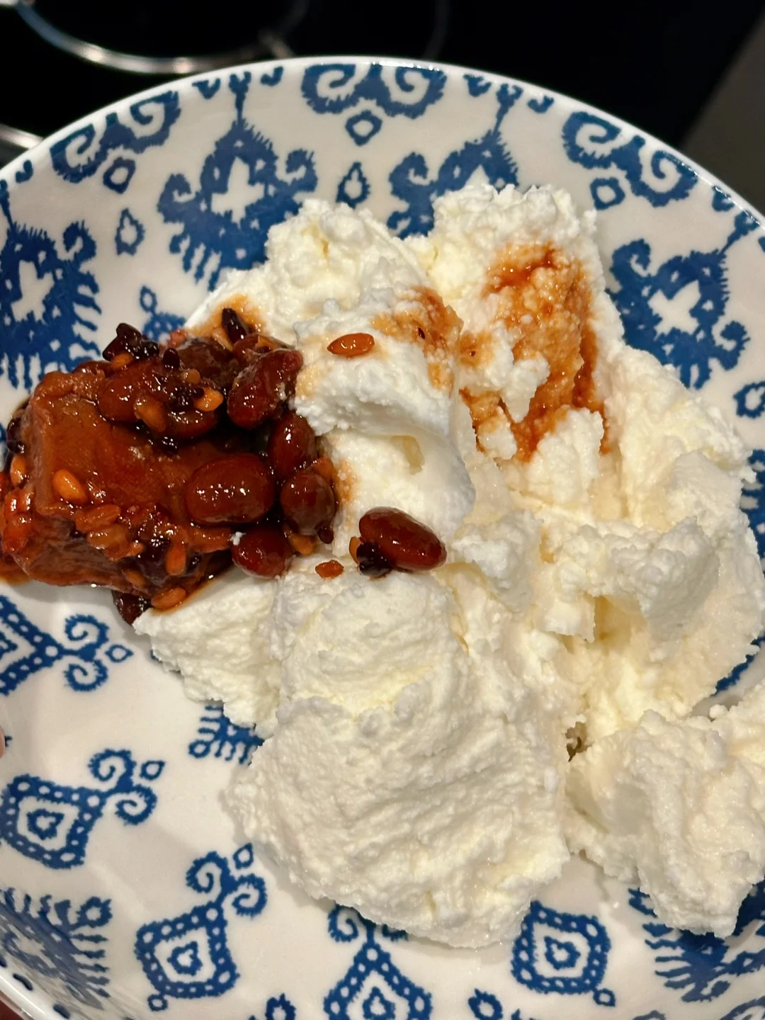 你就把Ricotta想象成“白粥”的角色,清淡,熨贴,温和,与风味鲜明张扬的腐乳相得益彰。更妙的是,本来就有人调侃腐乳是“中式奶酪”,独特的发酵香味配上真·奶酪的醇醇奶味,就很和谐!