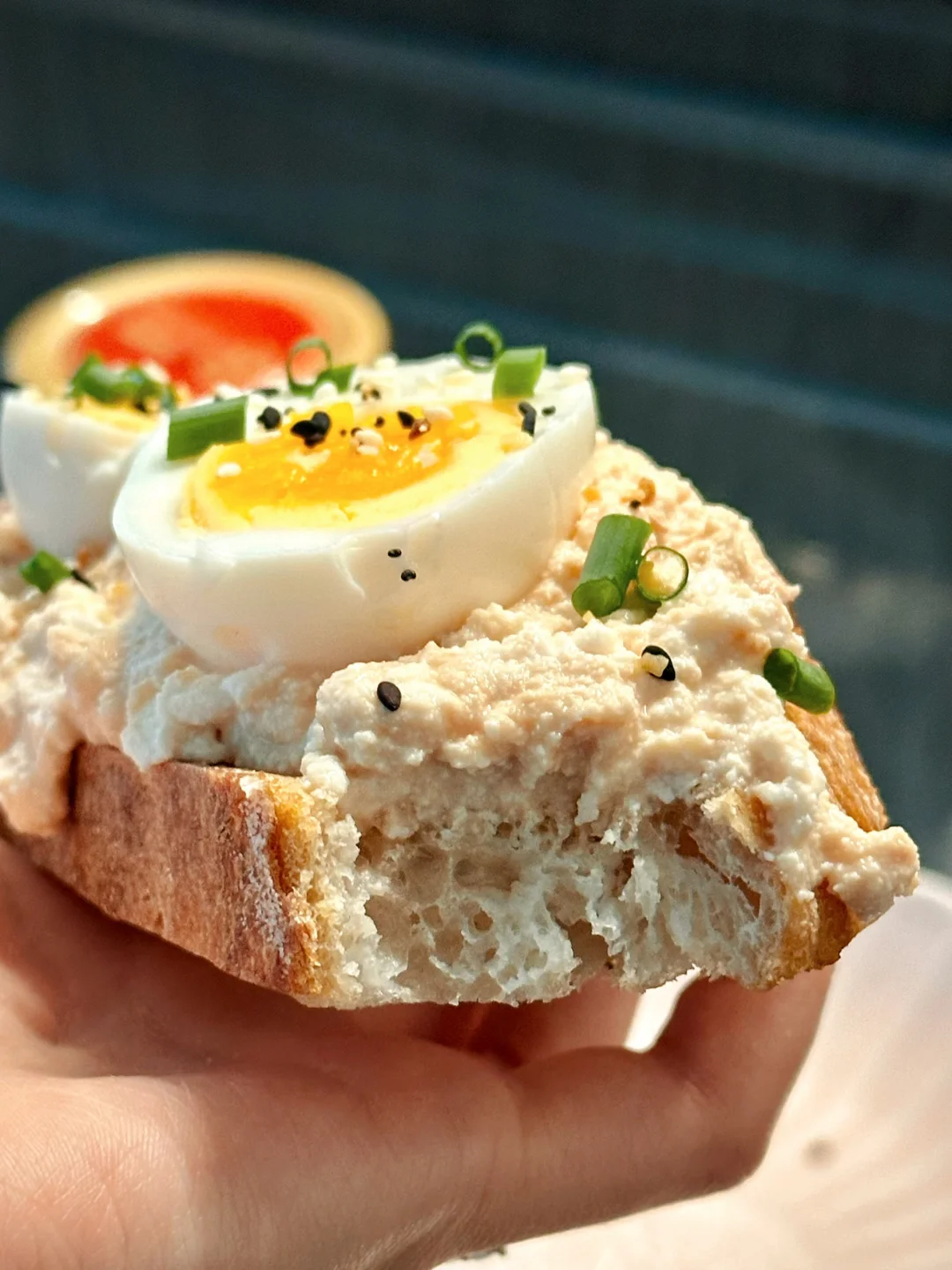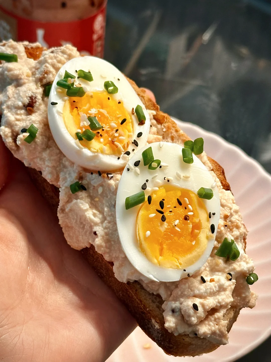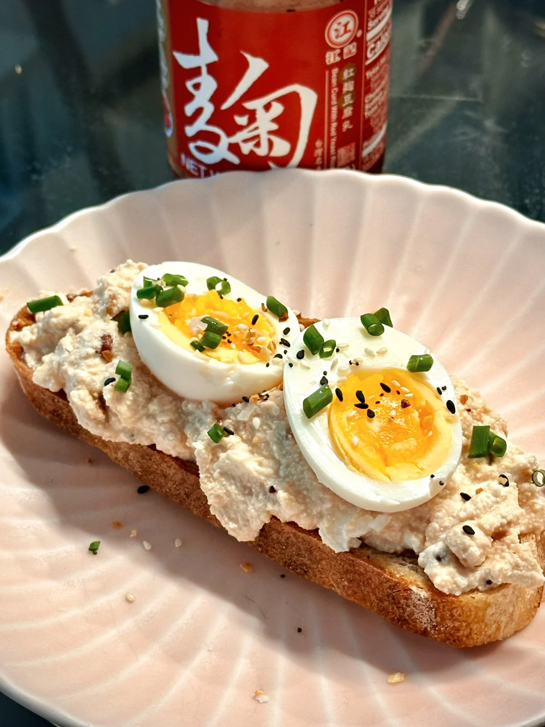 🍞我用它来搭配烤得脆脆的酸面包,顶上再摆一枚嫩煮蛋,撒一点everything bagel seasoning和小葱碎增香。是那种一口咬下会让人手舞足蹈的早餐!