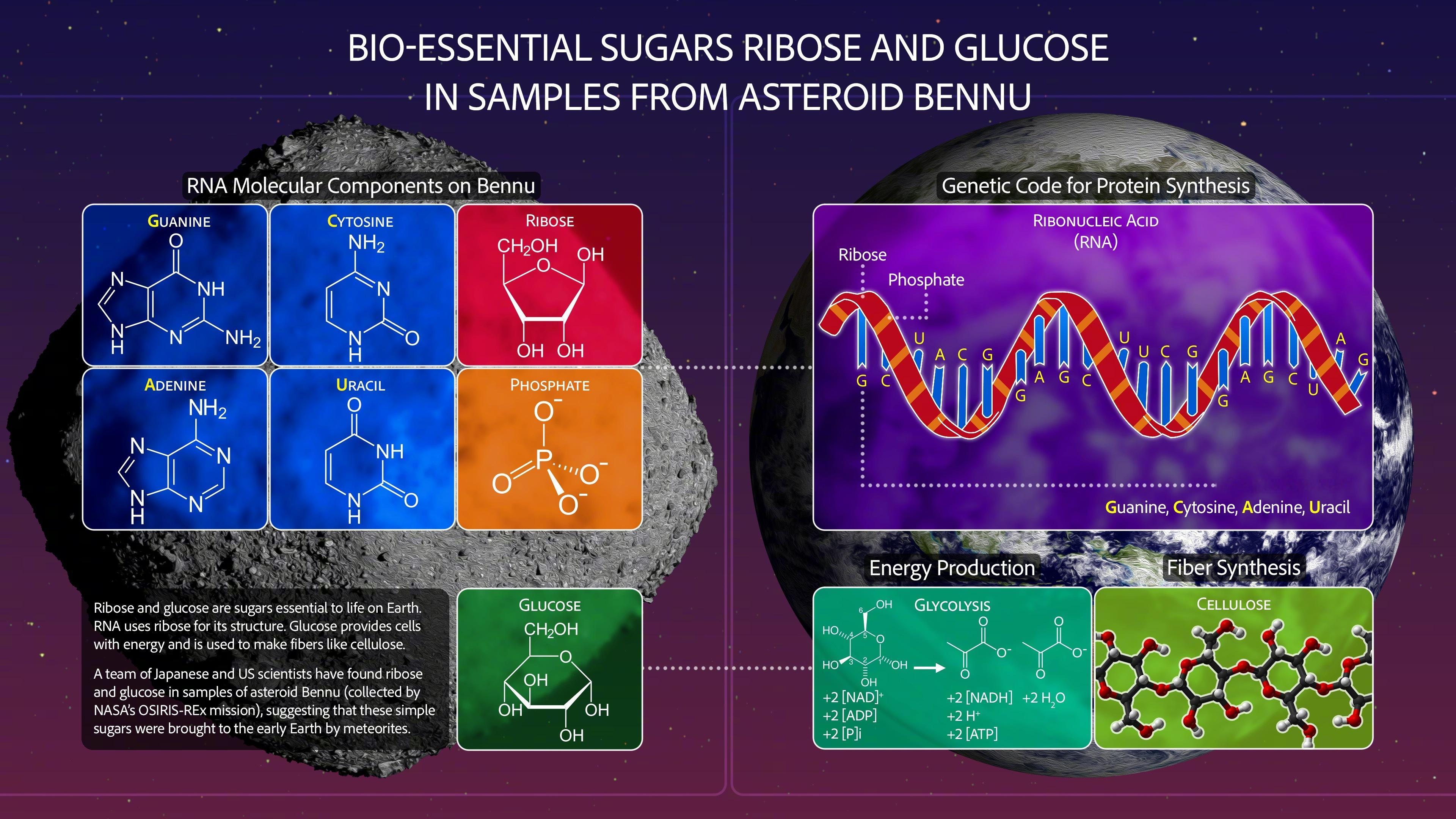 小行星“贝努”(Bennu)持续为科学家们解答关于早期太阳系形成和生命起源的一些最大谜题。贝努(Bennu)小行星的样品不断为科学家解答关于早期太阳系形成和生命起源的重大问题提供新线索。随着NASA OSIRIS-REx(源光谱释义、资源识别与安全—风化层探测器)飞船带回的原始样品研究持续深入,《自然-地球科学》(Nature Geosciences)和《自然-天文学》(Nature Astronomy)期刊最新发表了三篇重磅论文,揭示了令人瞩目的发现:生物必需的糖类、一种前所未见的“太空口香糖”,以及超乎想象的超新星尘埃丰度!这三项重大成果共同描绘了一个令人震撼的图景:生命的关键分子,包括核苷酸、蛋白质的基本拼块、能量糖类以及复杂有机聚合物,很可能早在地球形成前,就已经在像贝努这样的小行星中准备齐全,然后通过陨石把生命材料播撒到年轻的地球。网页链接