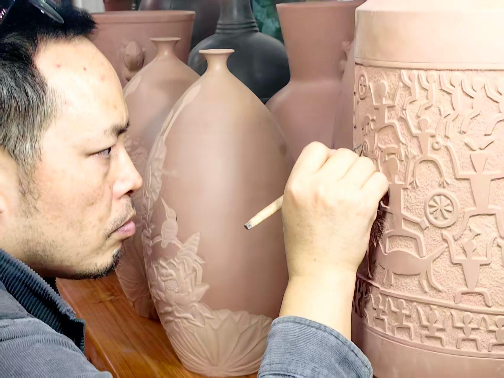 蚝美钦州潮听河海 钦州市是四大名陶故里,坭兴陶大师王宝祥也是坭兴陶的领军人物。王宝祥先生1986年生,广西钦州壮族人,钦州市非物质文化遗产坭兴陶烧制技艺代表性传承人。师从中国工艺美术大师李人帡,擅长陶艺造型、仿生雕塑与精工陶刻,作品融入壮乡图腾、田园风光等地域元素。获广西工艺美术大师、全国陶瓷行业技术能手等称号,代表作《壮乡飞歌》被中国工艺美术馆收藏,斩获“铜鼓奖”“八桂天工奖”等65项省部级以上奖项。坭兴陶大师王宝祥浦北陈皮陈香世界