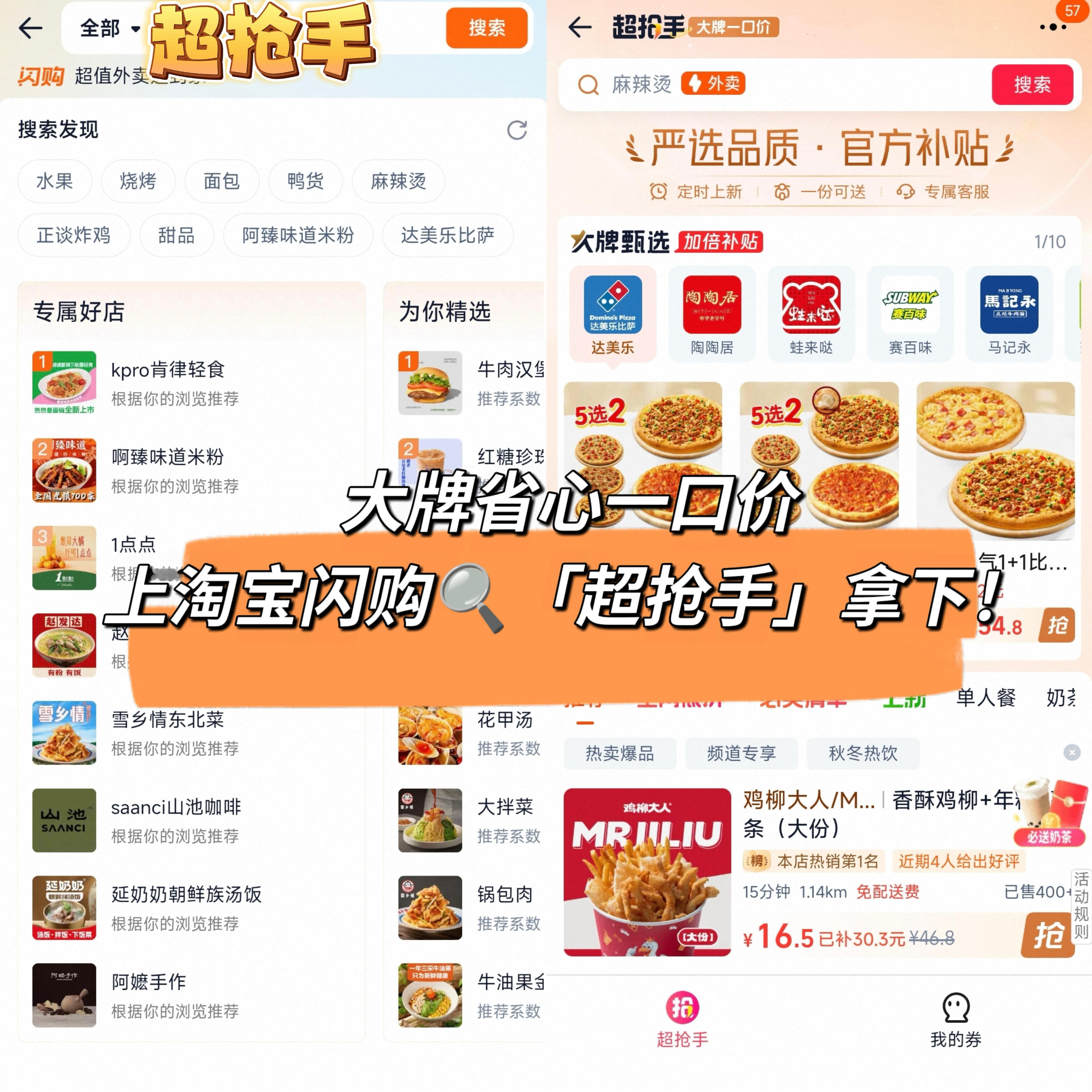 12月的第一周工作日结束了耶!周六宵夜的仪式感不得来一顿省心又实惠的美食!搭子告诉我上淘宝闪购搜「超抢手」,达美乐金沙咸蛋黄嫩鸡比萨9英寸(双层芝心卷边)52.9元起,谁懂今天的快乐就是这么简单!而且还有超多大牌省心一口价,上淘宝闪购🔍超抢手都拿下,真的很省心啦!淘宝闪购超抢手淘宝闪购超级周末和李现一起拿下超抢手省心美食