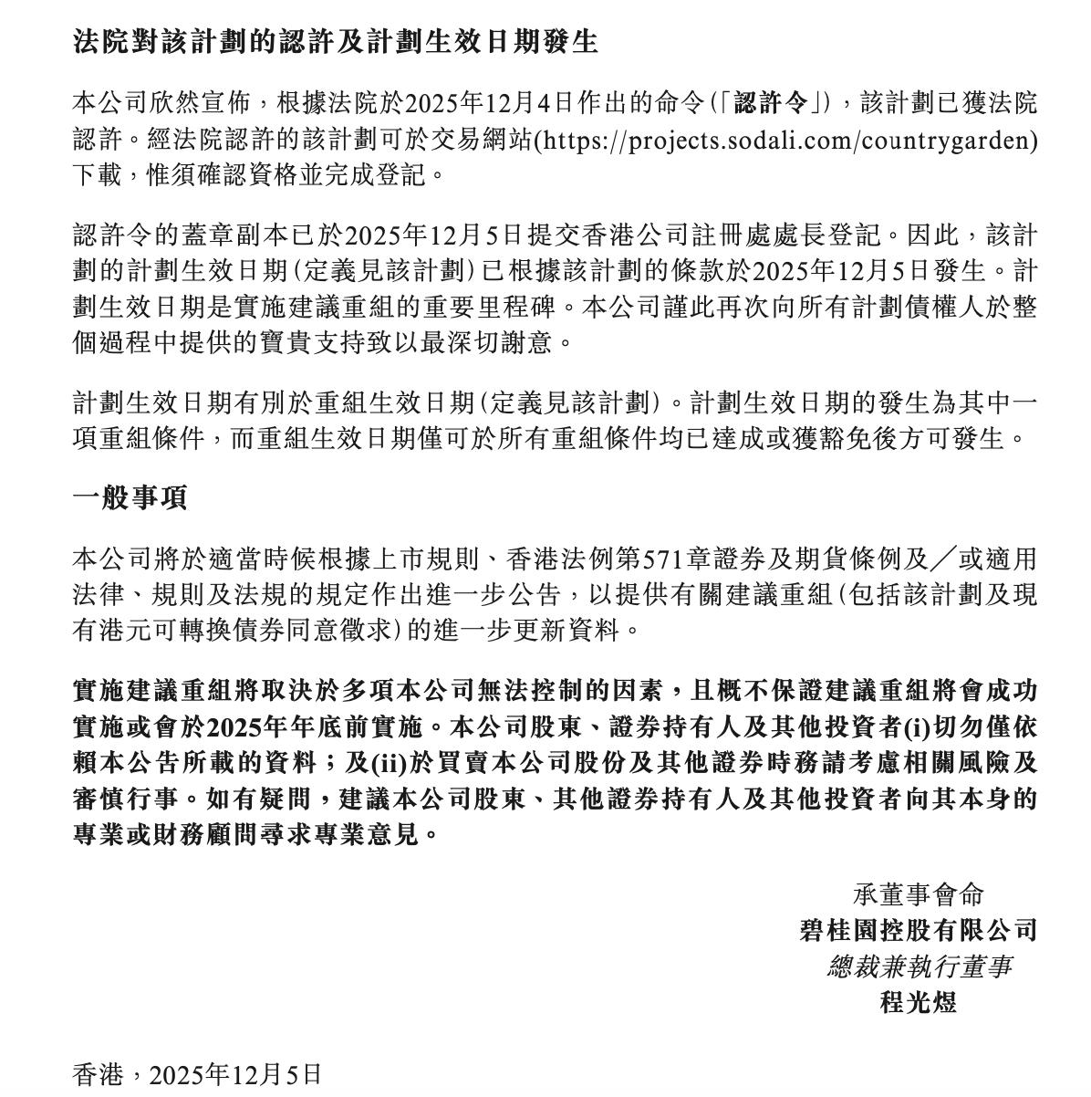 12 月 4 日,碧桂园换了掌舵人,港交所公告上的签名,不再是当了 15 年总裁的莫斌,换成了新总裁程光煜!这可不是简单换个人,而是这家地产巨头要 “换赛道” 了。 先说说新总裁啥来头?45 岁的程光煜是个 “老碧桂园人”,清华土木工程博士毕业,2007 年就进了公司,还是碧桂园招的第一个博士生,早年还当过创始人杨国强的助理。这 18 年里,他从基层一路做到高管,项目运营、营销、产品设计啥都管过,2023 年就开始负责核心的地产开发业务,算是把公司里外摸得门儿清。 这次换帅还有个关键背景:碧桂园的债务问题终于搞定了!12 月 4 日当天,177 亿美元的境外债、137.7 亿元的境内债重组都通过了,总共能少还 900 多亿,以后借钱的利息也降到 1%-2.5%,未来 5 年不用集中还钱,总算从债务泥潭里爬出来了。 之前碧桂园就把 13 个房产区域合并成 10 个,明显是在给新管理层铺路。老板杨惠妍也说了,以后不盲目追求 “开更多楼盘”,而是要搞 “精细化运营”,专心盖 “好房子”、做城市更新。为啥选程光煜?因为他既有工程背景懂建房,又懂营销和运营,正好契合现在房地产从 “快周转” 到 “重品质” 的转变。 对购房者和市场来说,这都是好消息:碧桂园 2025 年前 11 月已经交了 14 万套房子,累计超 180 万套,交房底气还在。现在债务压力没了,又换了懂行的 “少帅” 掌舵,接下来就看程光煜能不能带领碧桂园 “二次创业”,把房子品质和服务提上去。