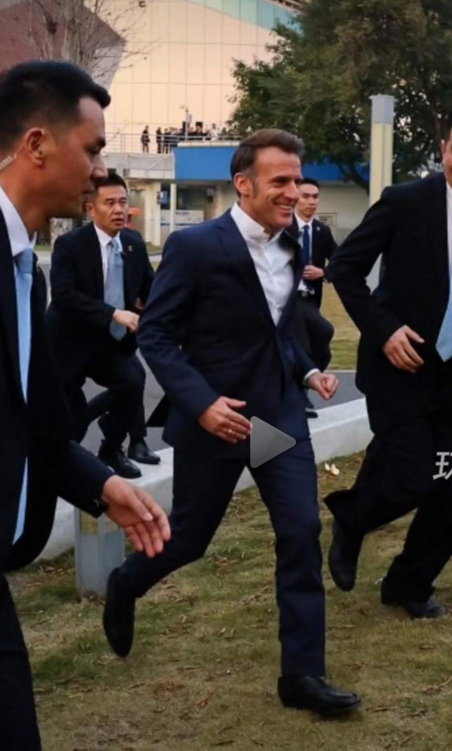 马克龙前面又蹦又跳又是握手又是拍照,玩嗨了,了他后面中方保镖和法方保镖干起来啦! 法方保镖:“不能这样让马乱跑,危险!” 中方保镖:“不,这里是中国,不是法国,马可以乱跑,没事儿!” 法方保镖:“我是马的保镖,他的安全由我负责!” 中方保镖:“不,马在中国,我负责!” 法方保镖:“他是我的总统!” 中方保镖:“他是我们的客人!” …… 过头一看,马克龙跑向人群。 法方保镖:“马跑了……咱俩别争了!” 中方保镖:“没事儿,让他跑!” 法方保镖:“咱俩的事以后约!” 中方保镖:“时间地点你定!”
