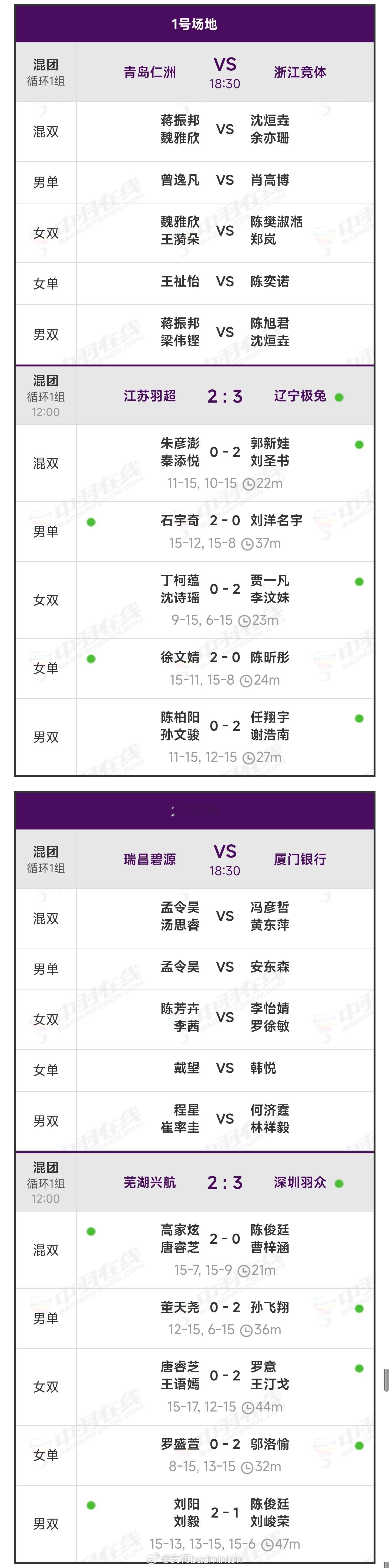 羽超联赛杭州赛区最后一日赛果(图2)至此第一循环赛已全部结束🔚⭐各俱乐部第一循