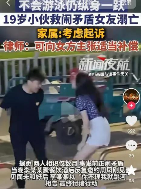 19岁不会游泳,他纵身一跳救了女友,却再没上来…女方的反应让人心寒! 这两天,四川西昌的悲剧刷屏了!19岁的周凤刚,为救跳河女友溺亡。两人相识才几个月,事发前正闹矛盾。女孩喝酒后以死相逼,男孩明知不会游泳还是跳了下去,用最后力气推她上岸,自己却沉入水中。更扎心的是,女方家属垫了4万安葬费后,再没露面,连葬礼都没来。 网友震怒!恋爱脑送命?救人不该赌上自己!女方作死出人命,事后躲责任,良心不痛吗?律师则认为,男女朋友无法定救助义务,但男孩家属或可依《民法典》要补偿。 生命不是爱情筹码!冲动跳河是傻,盲目救人更傻。真正爱一个人,先学会情绪稳定。活着,比什么“证明”都重要。这悲剧,撕开多少年轻人的情感盲区? 你怎么看?遇到类似情况会下水吗?评论区聊聊…