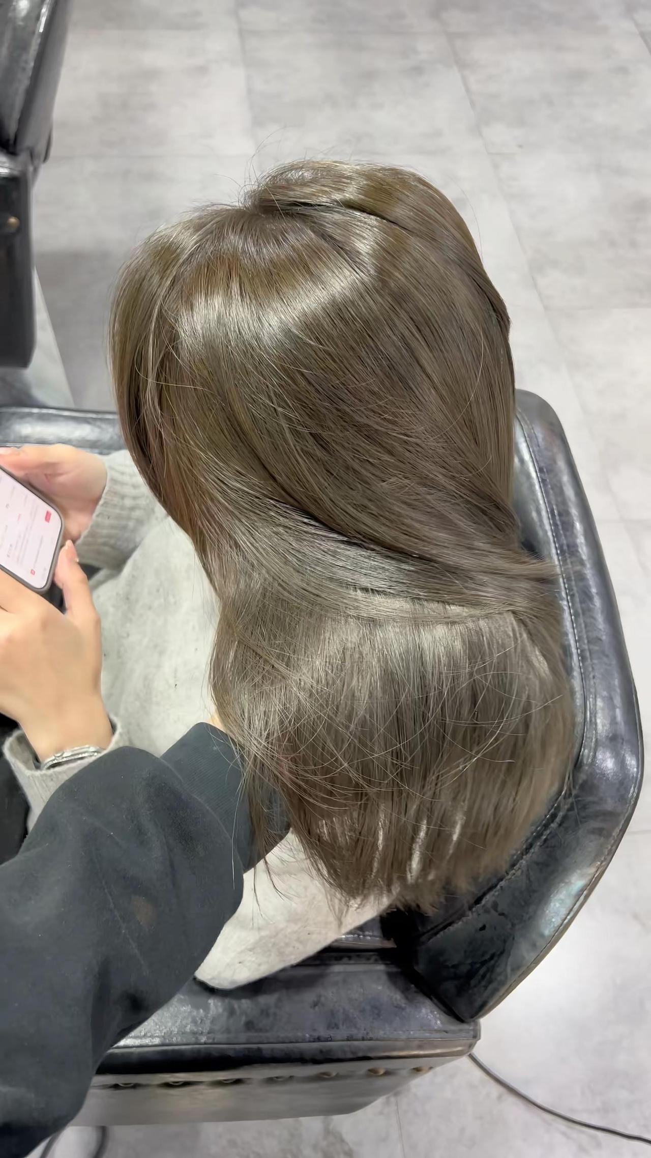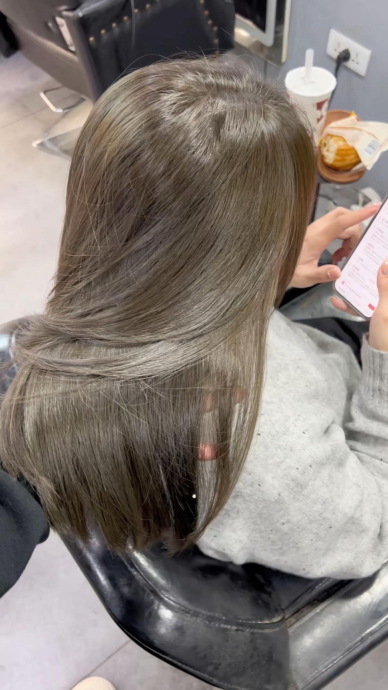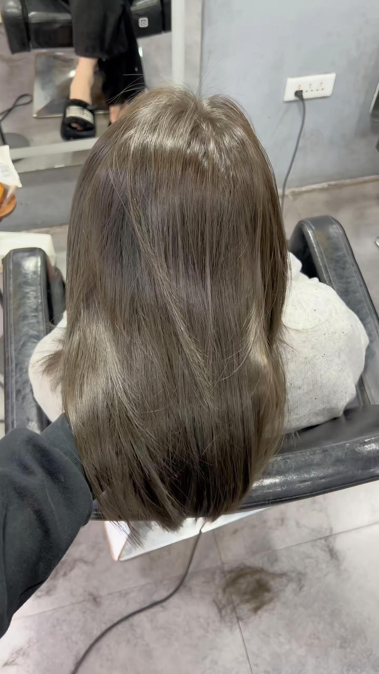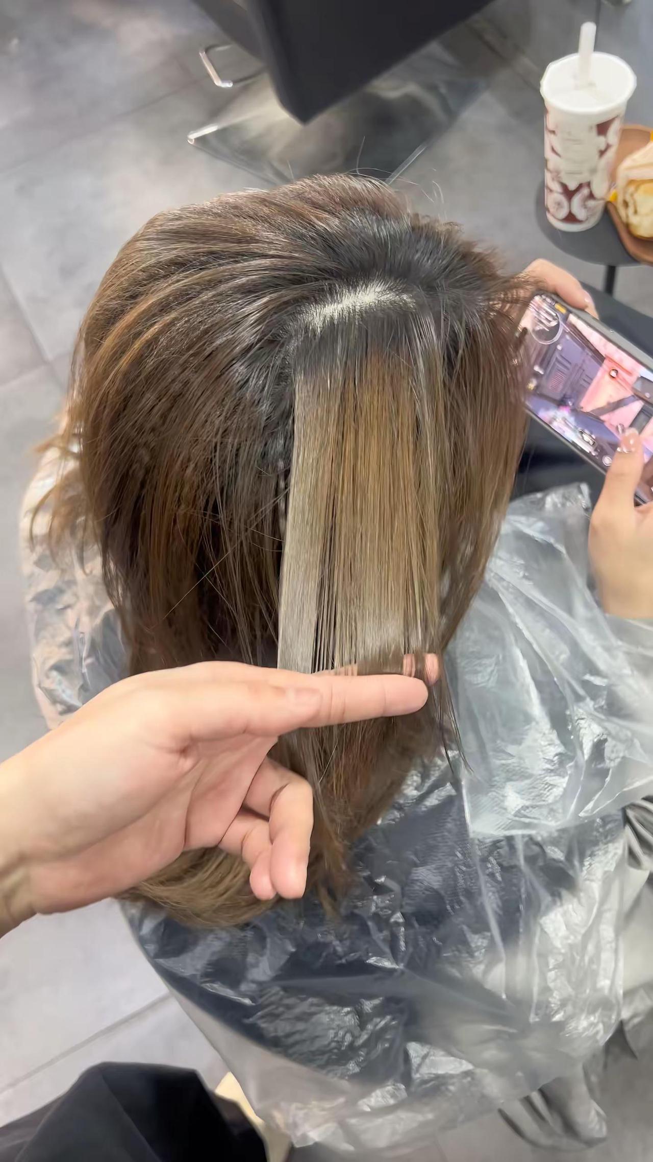 榛果冷棕色 根8/11➕15克蓝6%尾9/18➕三克蓝9%Ps: 根的配方色素很重,补根的时候不要刷到下面,还有就是连接口那个位置有点偏暖刷尾巴的时候要先刷连接口