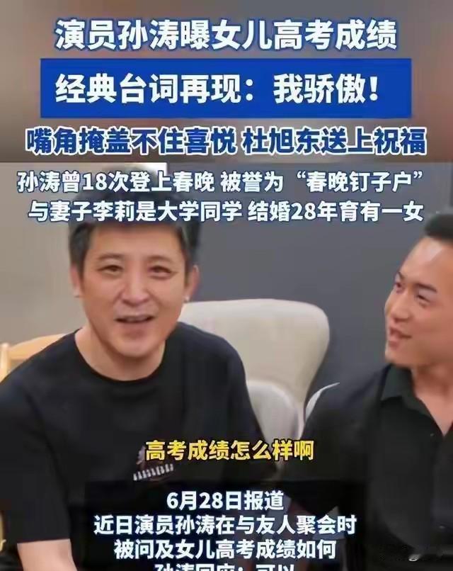 在娱乐圈这个名利场里,能一直保持干净底色的艺人真不多,但孙涛绝对算一个,活脱脱一股清流般的存在。 说起孙涛,大家第一反应肯定是春晚的“老熟人”,那句魔性的“我骄傲”直到现在还能让人想起就笑。从1995年第一次带着小品《纠察》登上春晚舞台,到后来的《你摊上事儿了》《吉祥三保》,他前前后后连登17次春晚,成了观众口中“鞭炮没响,他先到”的年三十标配。别以为上春晚容易,尤其是连续17次,背后全是死磕的功夫——第一次上春晚时,为了一个标准的敬礼转身动作,他硬生生练了四百次,手指关节磨掉皮,袖口被汗浸得发硬,最后直播零失误通过,这份较真劲儿在圈子里少见得很。 更难得的是他的私生活,干净得让人挑不出一点毛病。结婚28年,从没有任何绯闻传出来,简直是内娱婚姻的“模范样本”。他和妻子的感情一直很低调,不炒作不秀恩爱,剧组请客他推说要陪女儿写作业,广告庆功宴也只是露个面就走,把更多时间都留给了家人。在这个出轨、离婚新闻满天飞的圈子里,他把“老婆孩子热炕头”过成了最让人羡慕的日子,这份坚守比任何流量热度都珍贵。 他的女儿也遗传了这份踏实劲儿,是个实打实的学霸。高考那年,孙涛陪考时只戴个口罩,没保镖没摄影,连老师都事后才知道这是春晚名人的孩子。放榜后他没晒具体分数,只笑着比了个大拇指说“孩子很棒”,低调又骄傲。不像圈里有些星二代靠父母光环博眼球,他的女儿安安稳稳完成学业,靠自己的能力打拼,活成了父母的骄傲。 如今快六十岁的孙涛,依旧没什么架子。拍戏时认真琢磨角色,私下里不参加多余应酬,对前辈尊敬,对后辈提携,圈内外口碑好得没话说。他用17次春晚的坚守证明了实力,用28年无绯闻的婚姻诠释了责任,用优秀的女儿展现了好家风。在这个追求流量和话题的时代,孙涛这样干净、踏实的艺人,才是真正能走得远、让人打心眼里喜欢的存在。