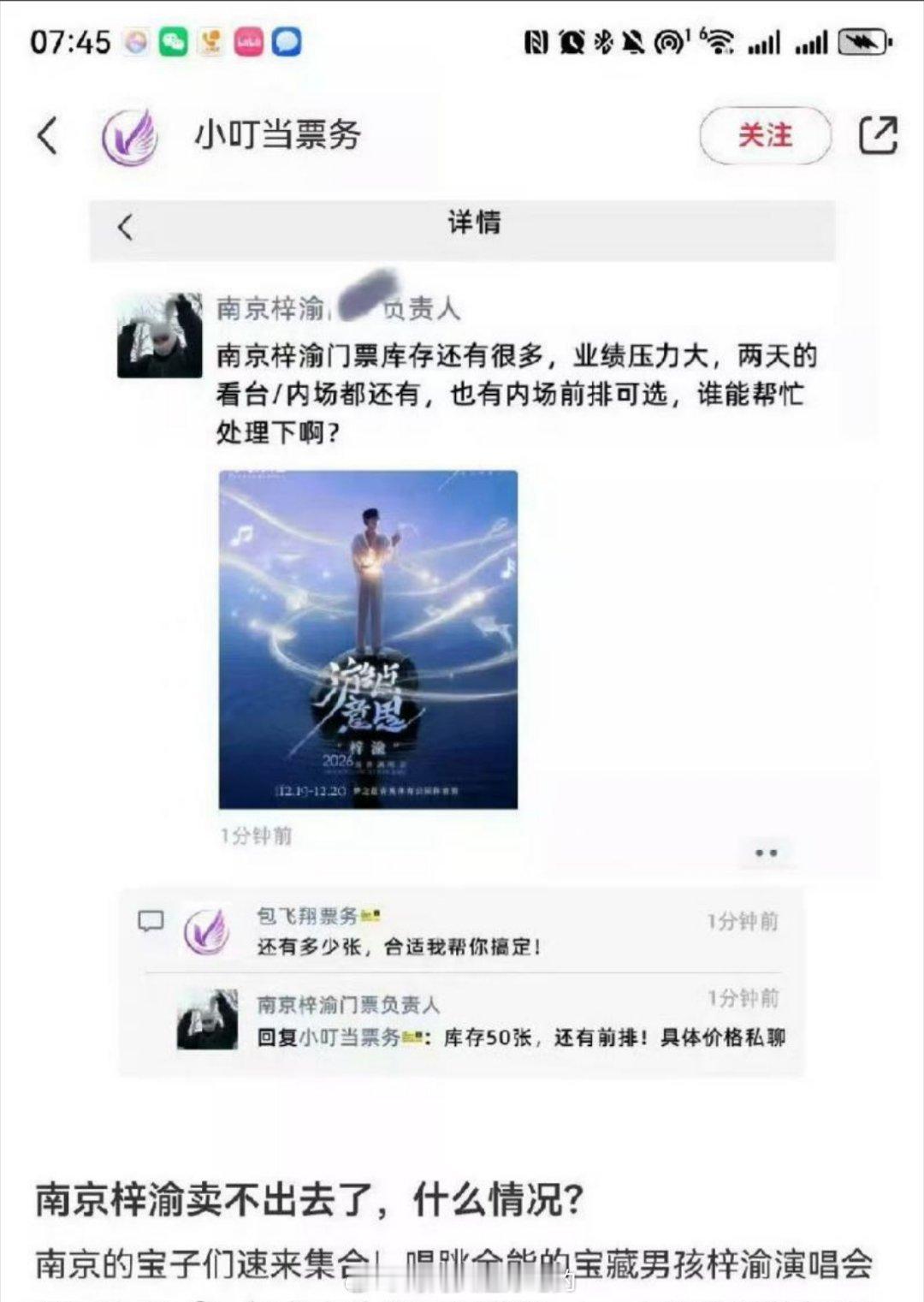 为什么梓渝大粉装抢不到?这用抢?【大量余票】【还剩很多】【不贵】【又降了】【有没有朋友帮忙处理】粉丝说不许收黄牛,黄牛:【问问主办方】