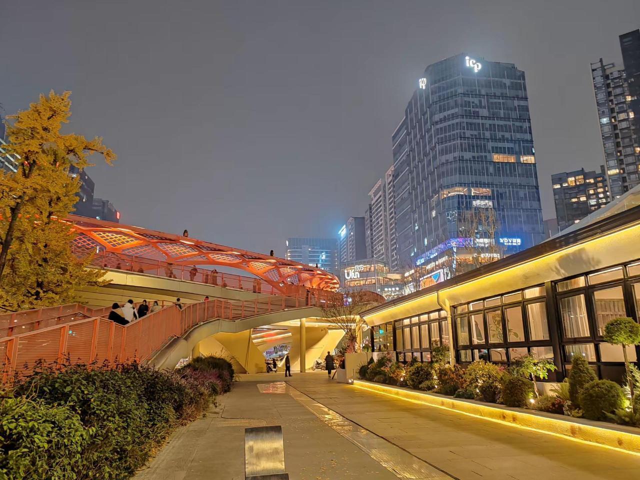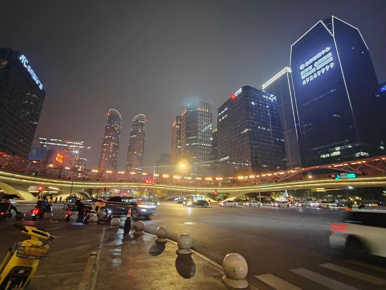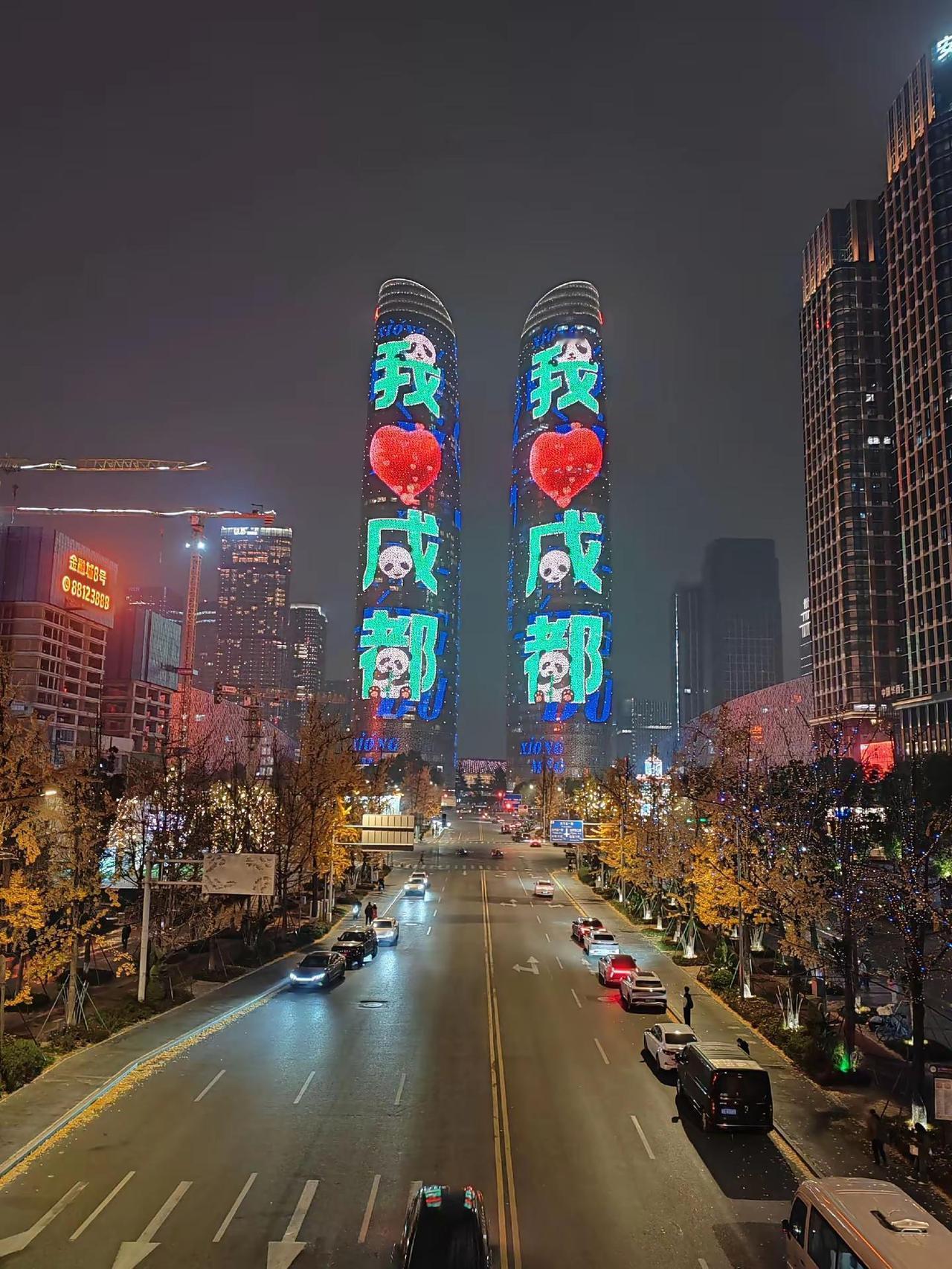 傍晚的天府双子塔像是浸在蜜糖里。天色从钢蓝褪成绒紫,两栋巨塔渐次亮起流光,玻璃幕墙淌着金与橘红的晚霞。锦城湖的风吹过来,带起路边火锅的香。年轻人们举着手机等“成都”二字的灯光秀,影子在广场上拖得老长。我抬头望,那光芒正一寸寸爬上塔尖,要戳进柔软的夜。