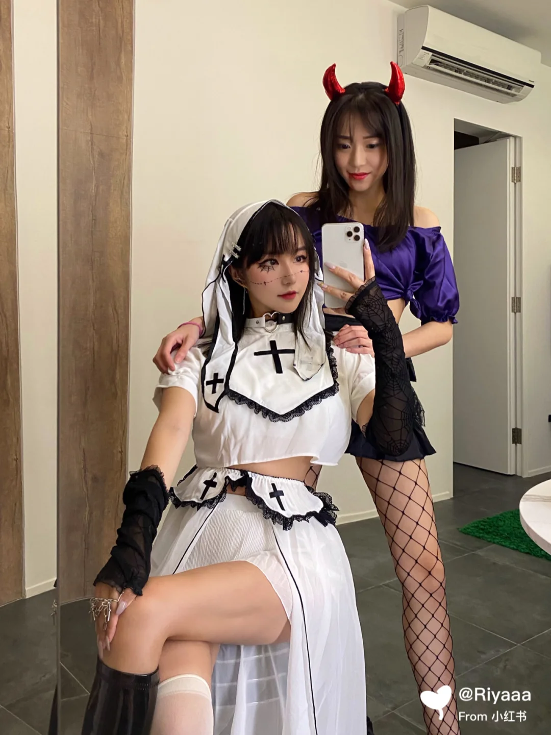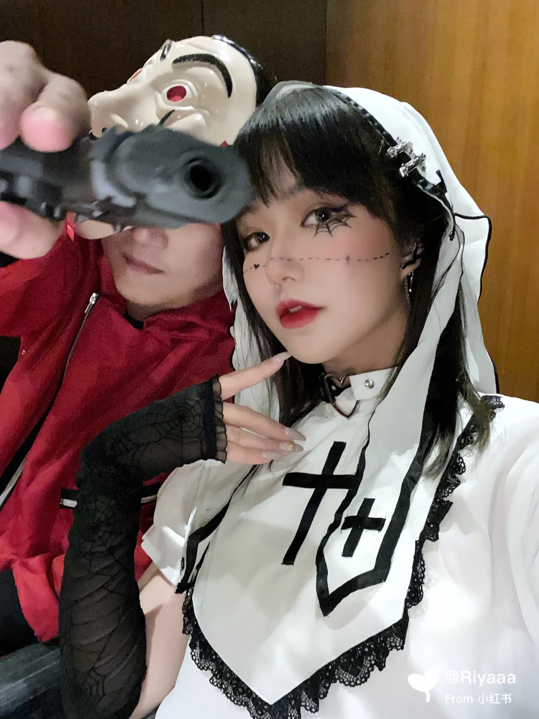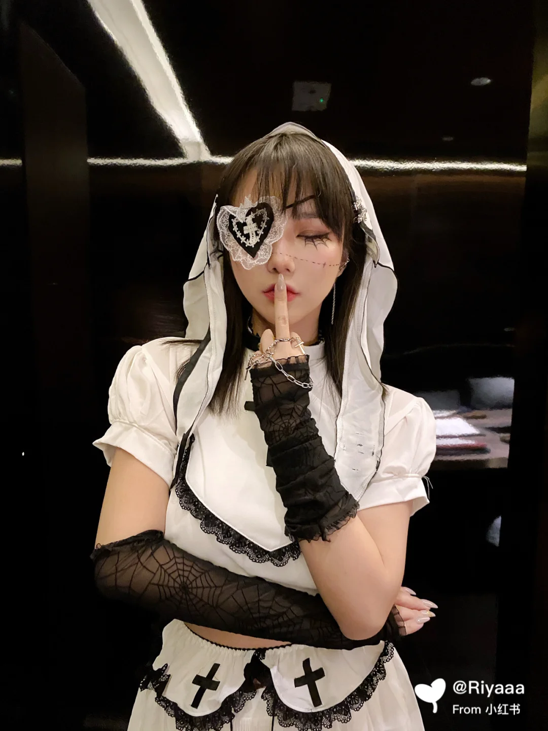 今年扮的修女~不知道大家扮的什么呢 感觉变装真的太好玩啦[哇R][哇R] 每个细节都花了小心思哟🖤