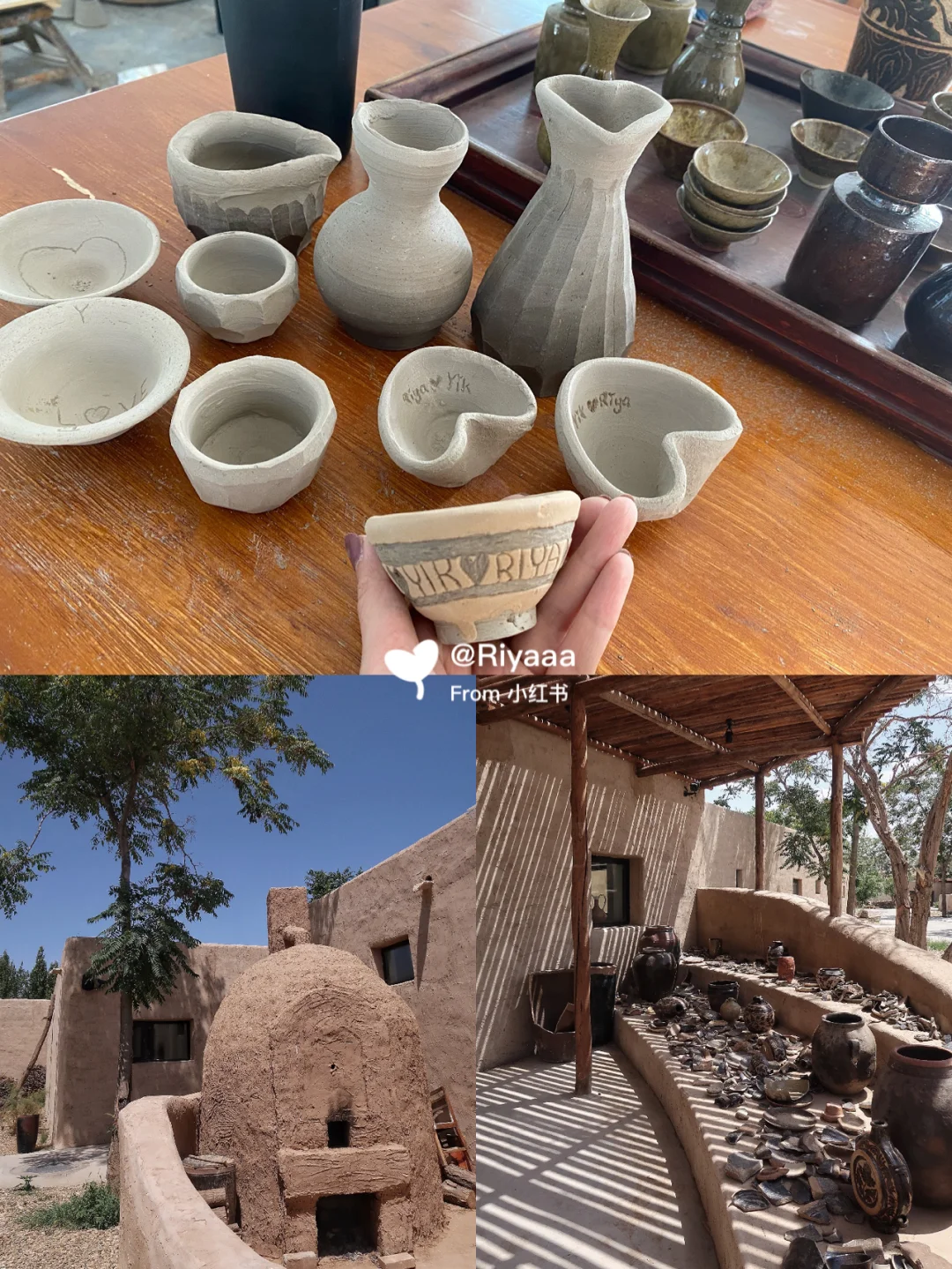 下午茶拍完没事做的话可以溜达到旁边的土陶屋做陶艺哟!我选的是598元2坨土,有工作人员教学~可以做图8这么多,可以刻字,他们用窑子烧好以后会寄到家里哦~
