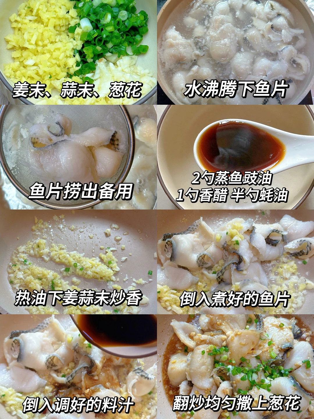 🥗食材:黑鱼片(300g)、姜、蒜、葱