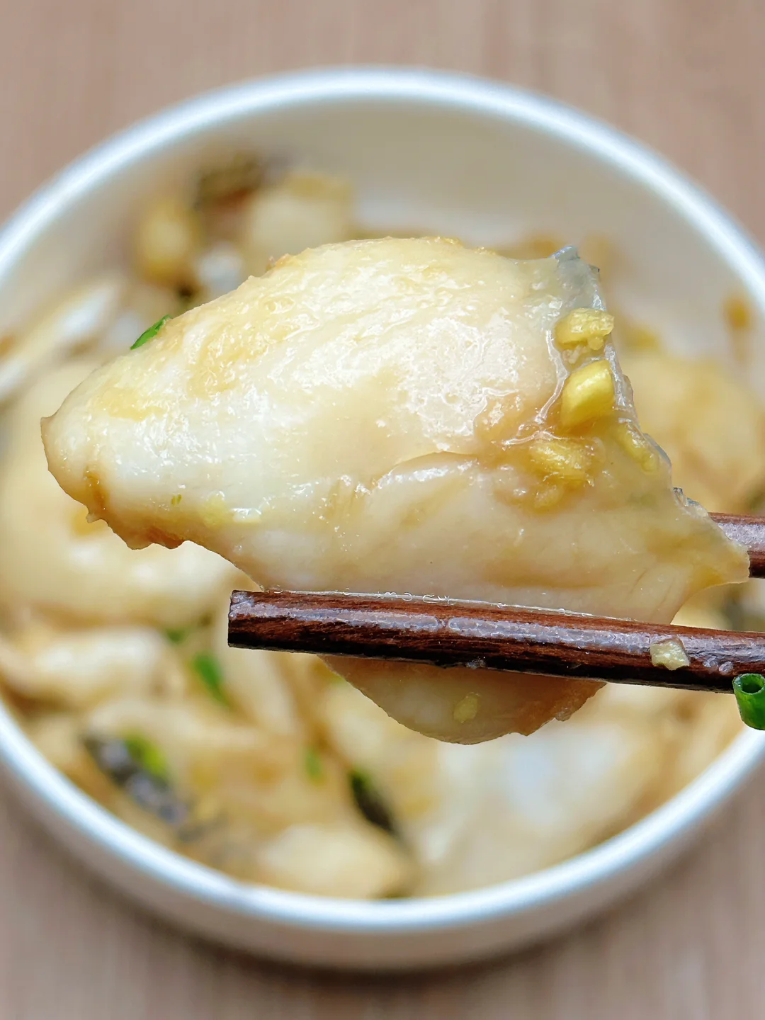 2⃣️调料汁:2勺蒸鱼豉油(没有可以替换生抽)+1勺香醋+半勺蚝油搅拌均匀备用。