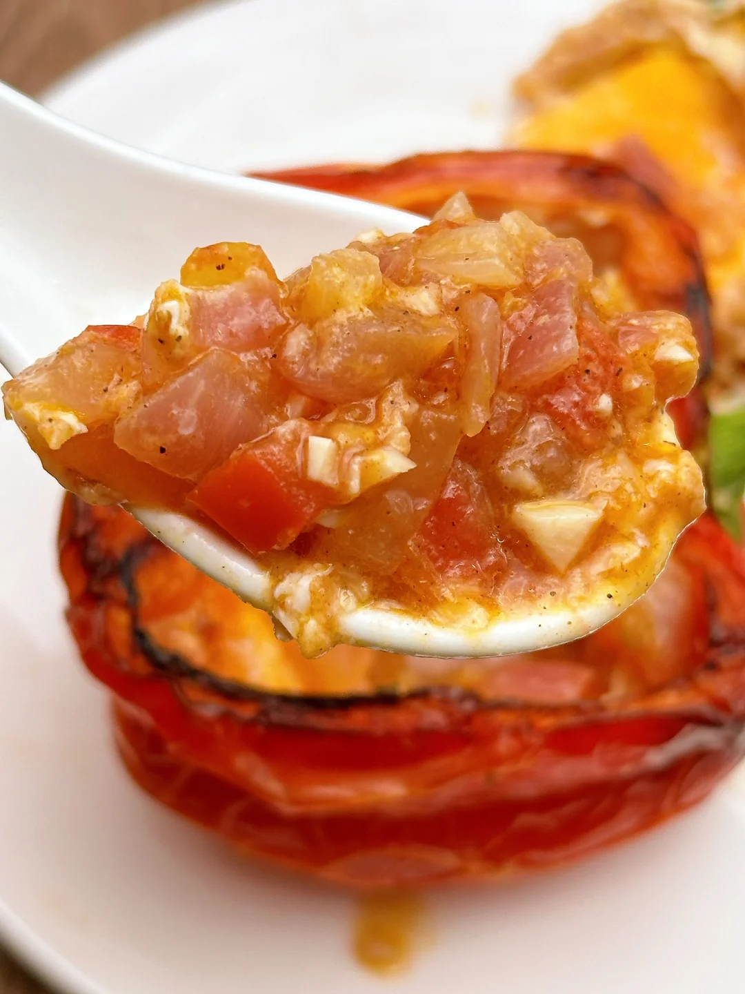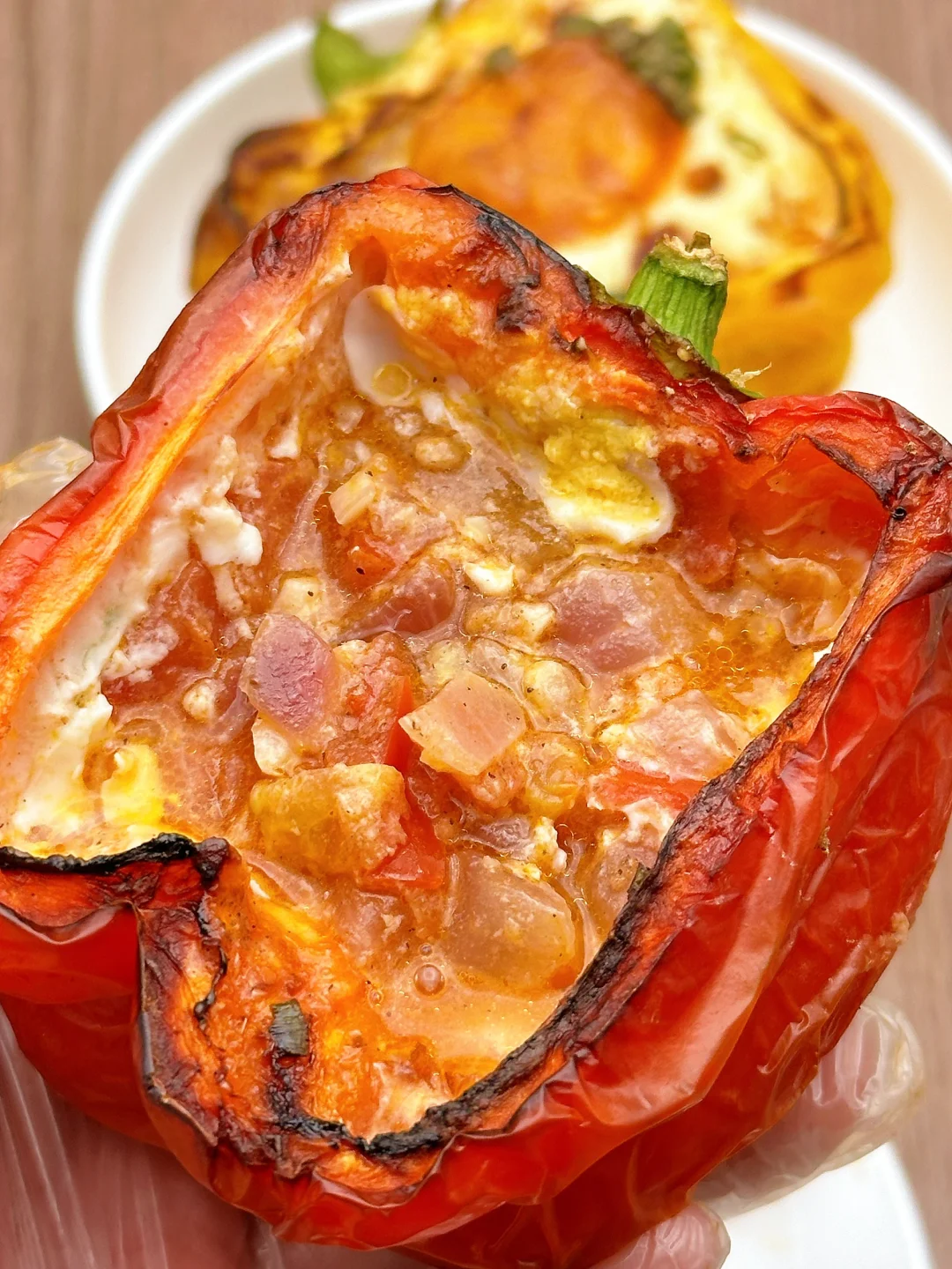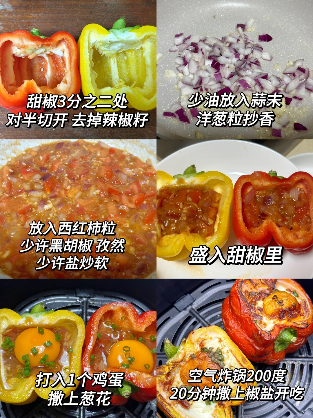 关晓彤太会吃了,低卡彩椒碗,真的巨巨巨巨好吃😋空气炸锅版彩椒蒸蛋,一口下去满满都是馅料, 口感酸酸甜甜,做法简单,不翻车,减脂姐妹快安排它~