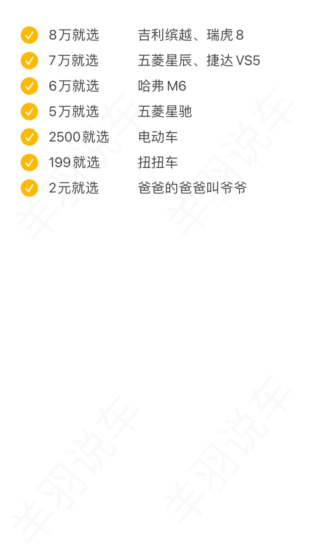 ❤️其实啊,买车就像买商品一样,真的不用纠结,汽车也是一个消费品,就应该像平时你买其他东西一样的逻辑,口袋有多少,就选什么车!就这么简单,不要把简单的事情复杂化,大部分人买车,它仅仅是一个代步工具而已,很少数人可能是需要一些其他的用途,这个就另外讨论!