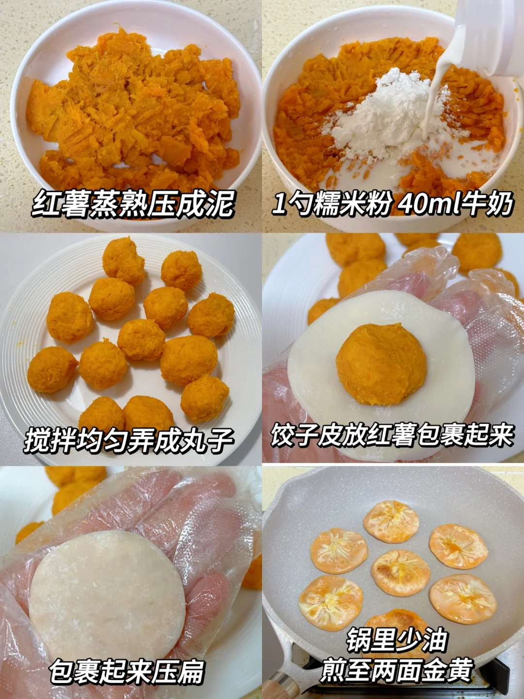 姐妹们,谁还没有吃过这个我真的会难过!太好吃啦,免揉面、无糖的红薯饼~减脂期用来解馋真的超棒!而且做法简单,姐妹们快试试~ 🥗食材:红薯、饺子皮、牛奶 🥘做法:如图所示~