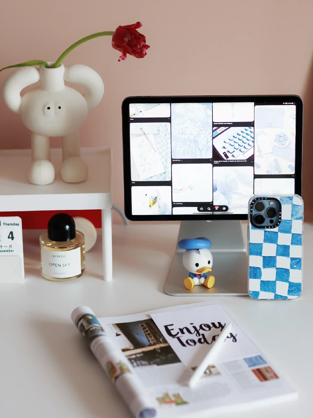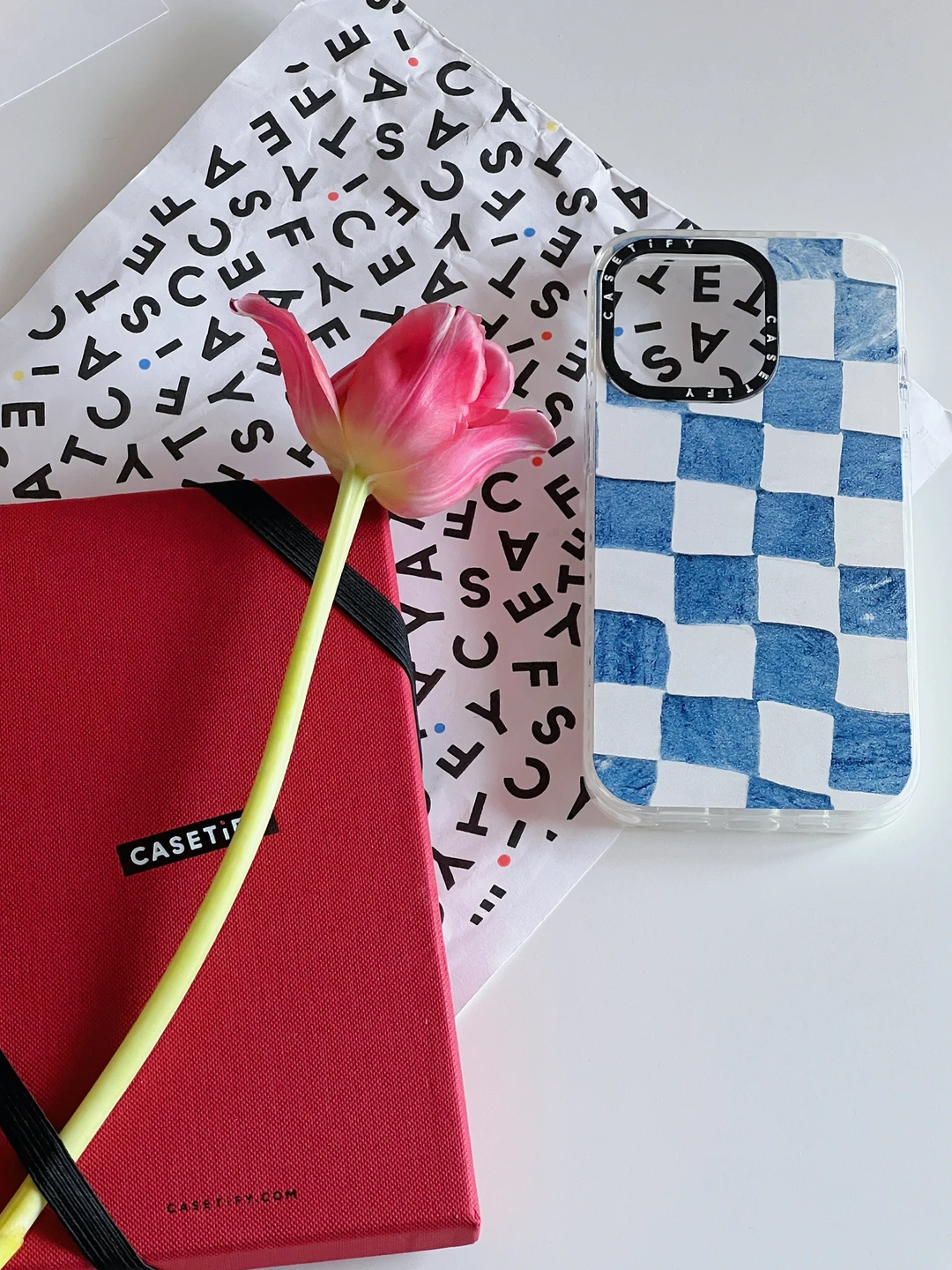 迟到的生日礼物 很称心意的蓝白格 清清爽爽 搭配远峰蓝赏心悦目 之前我送朋友过一个CASETiFY经典款 没想到自己也收到了 喜欢边框的小细节 🈶防震条 种草一下吧。 - 虽然说价格不平价 但好的手机壳还真的是好看又耐用:)
