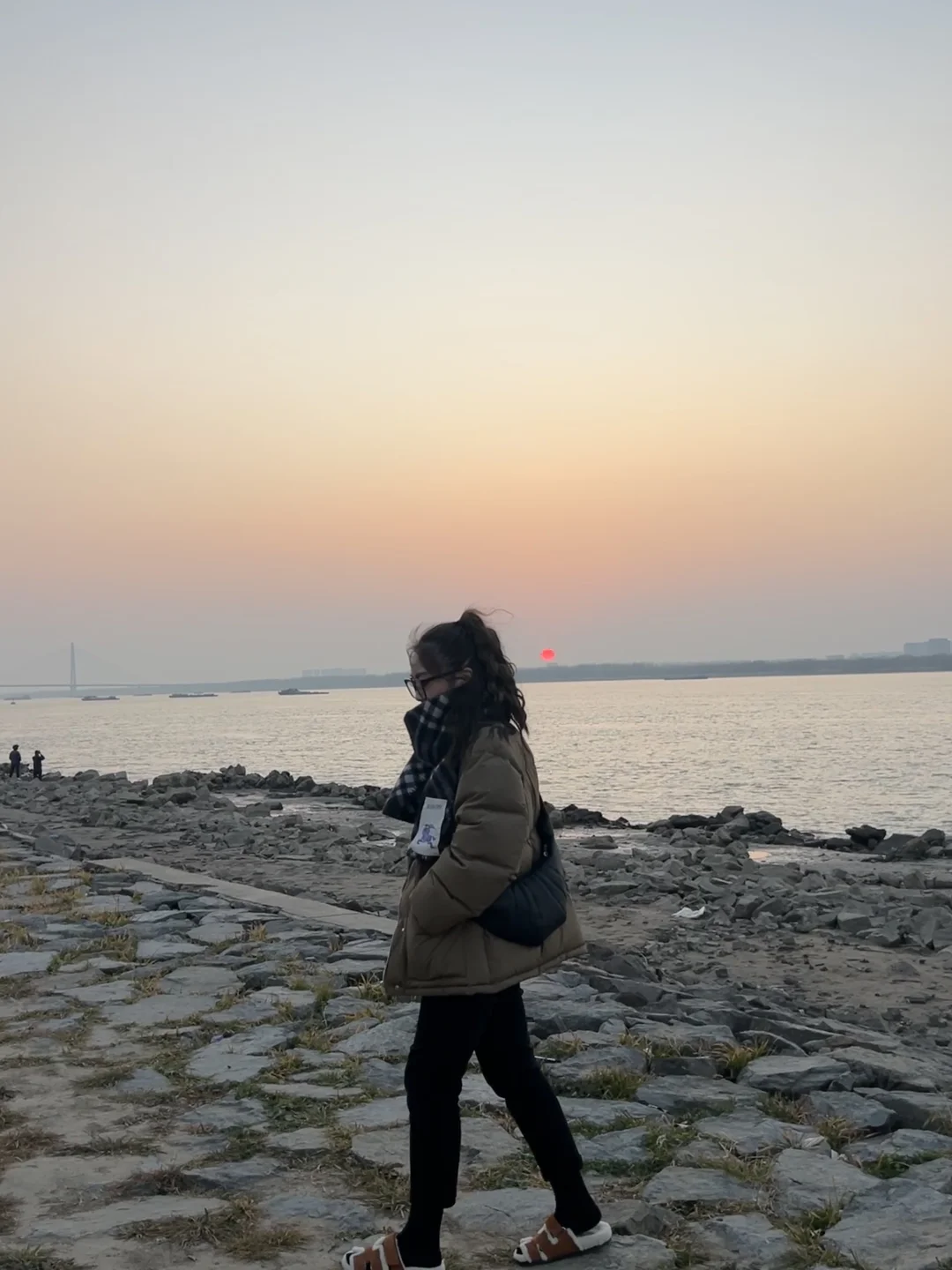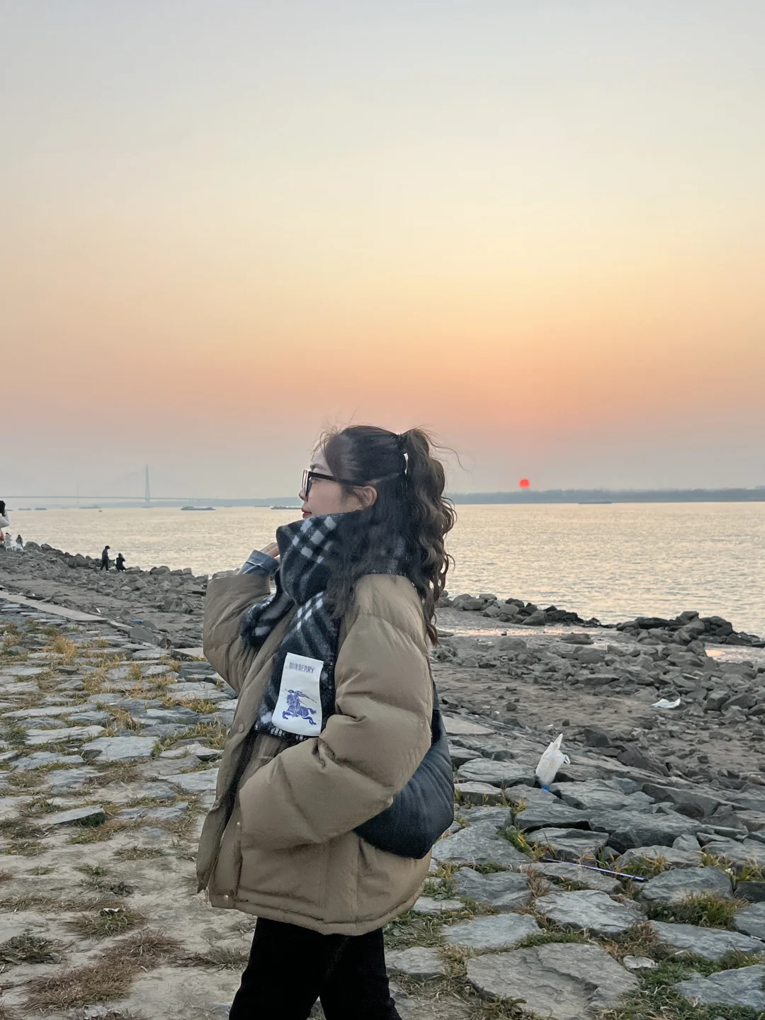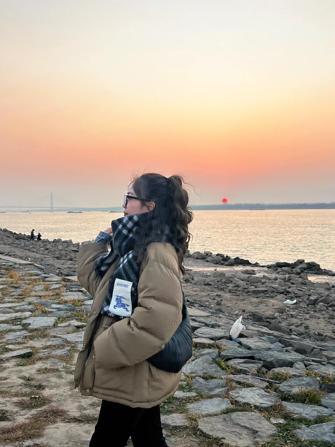 因为!!我们大南京!实在是太太太太太美了!每个季节都美到如诗如画 别有洞天!!快过年啦!问我南京旅游和吃喝攻略的宝宝们越来越多啦!!改天给你们出个大大的游玩list! 期待大家都来玩!🥰 周末穿了今年冬天蕞喜欢的ootd、背了新入的牛角包🥐和家属来江心洲看日落,穿着毛拖鞋追着夕阳跑了一路😂,实在太美太震撼了,这就是我们南京的济州岛啊!!(精挑细选了很久的牛角包 终于到手了 咱就是说它也太百搭太松弛太时髦了) 话不多说!一起期待新年叭!!! 🎈🌹🔵❄️🌅🌉