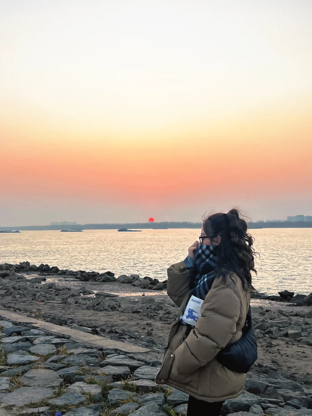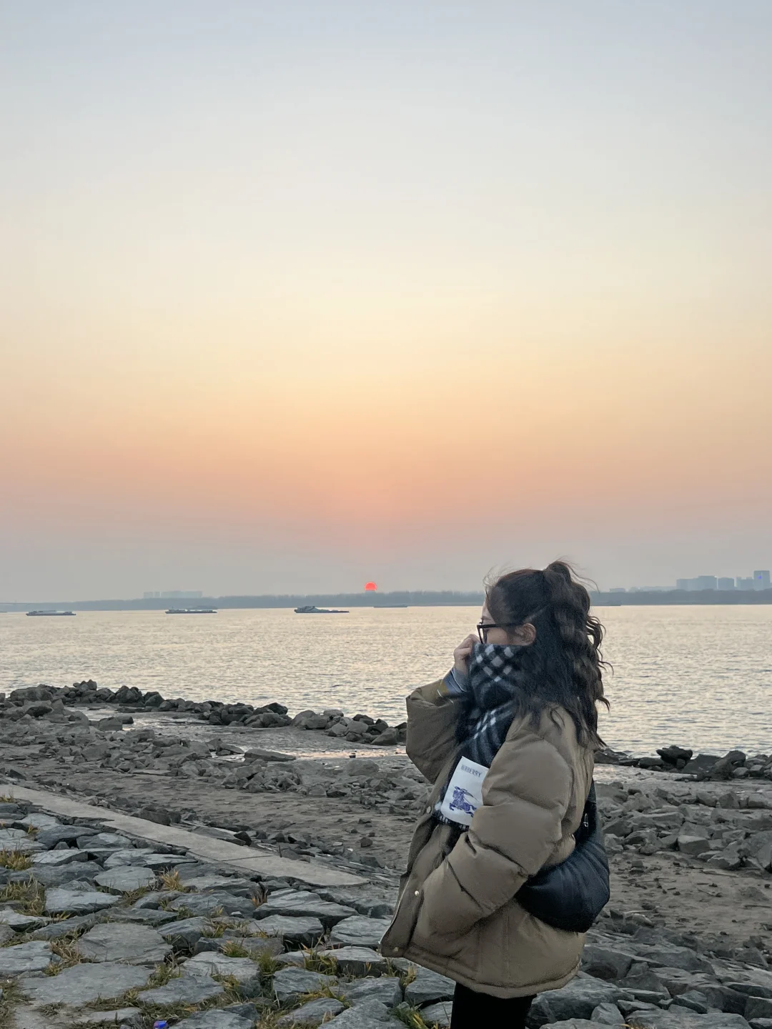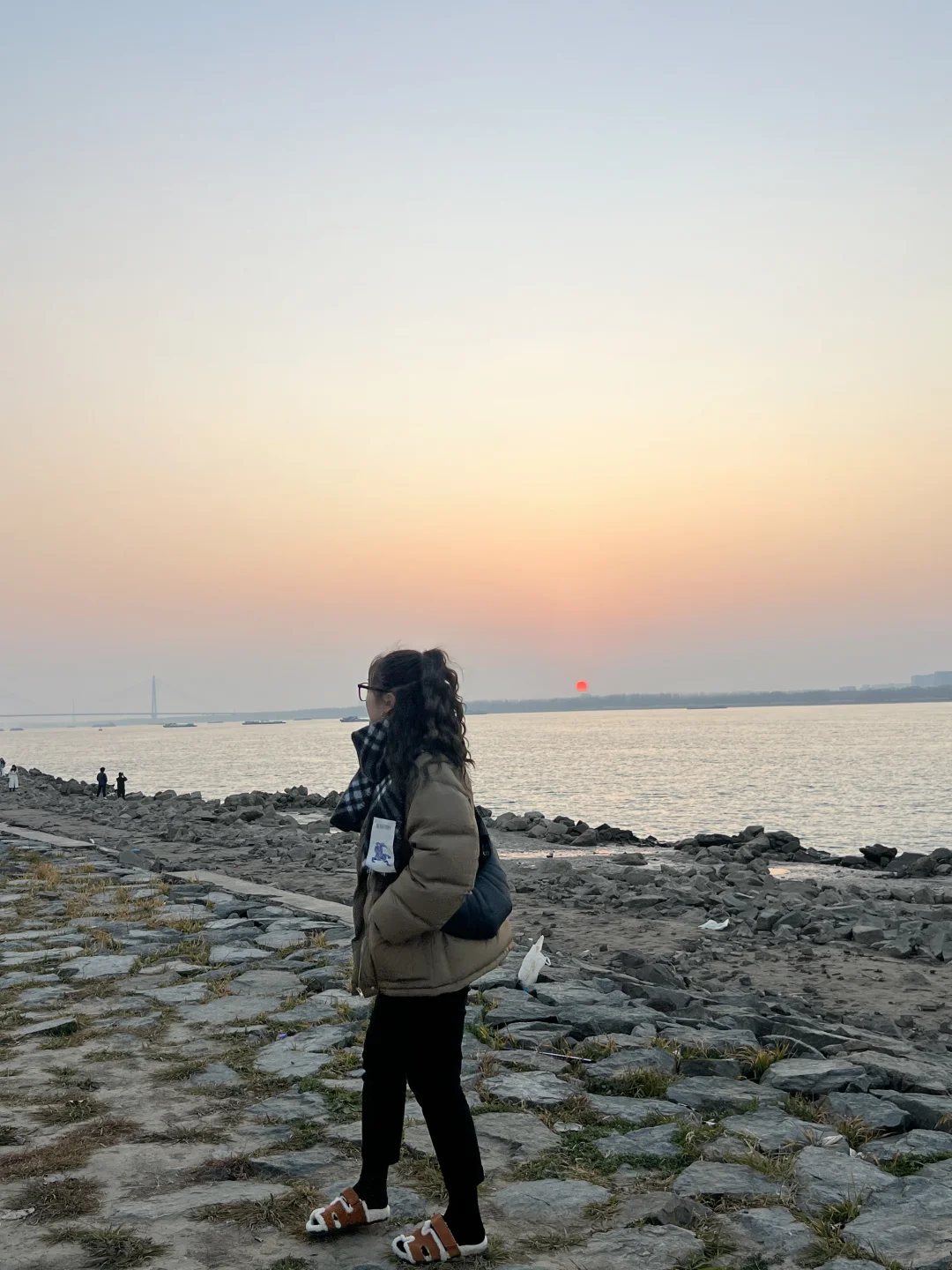 因为!!我们大南京!实在是太太太太太美了!每个季节都美到如诗如画 别有洞天!!快过年啦!问我南京旅游和吃喝攻略的宝宝们越来越多啦!!改天给你们出个大大的游玩list! 期待大家都来玩!🥰 周末穿了今年冬天蕞喜欢的ootd、背了新入的牛角包🥐和家属来江心洲看日落,穿着毛拖鞋追着夕阳跑了一路😂,实在太美太震撼了,这就是我们南京的济州岛啊!!(精挑细选了很久的牛角包 终于到手了 咱就是说它也太百搭太松弛太时髦了) 话不多说!一起期待新年叭!!! 🎈🌹🔵❄️🌅🌉
