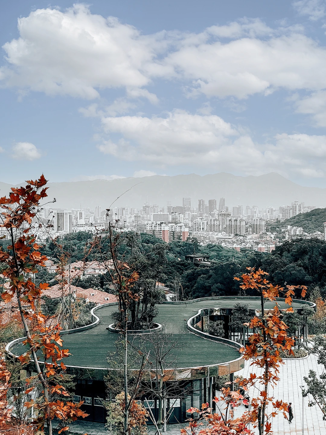 图9的照片即是公园3号门入口。沿着台阶而上,就会看到一座弧形不规则建筑,建筑旁就是美国红枫的区域啦。