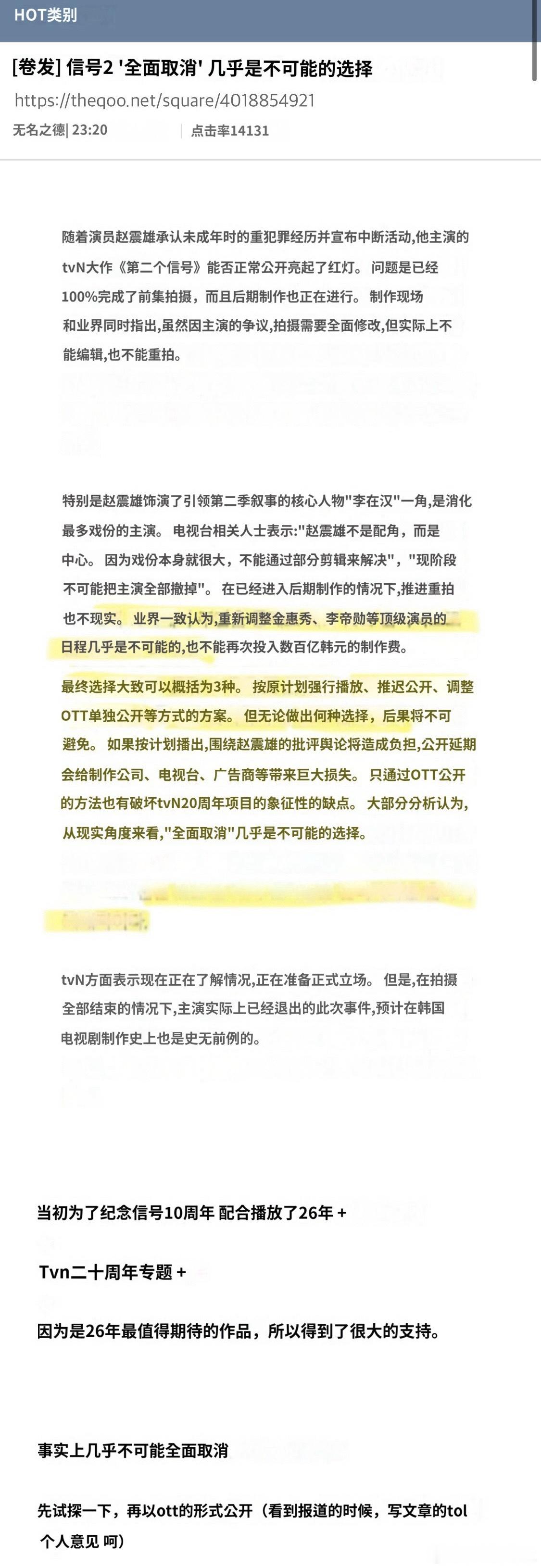 【热帖】《信号2》全面取消是几乎不可能的选项总结一下原因:投资太大,沉没成本太高。宁可强行播出也不会不放送。