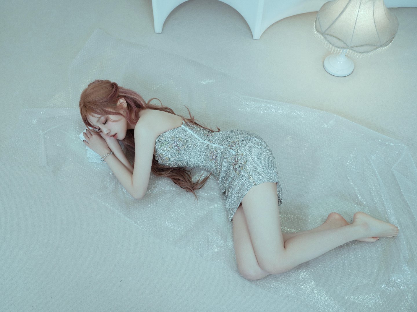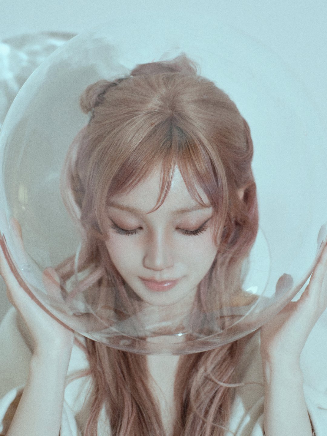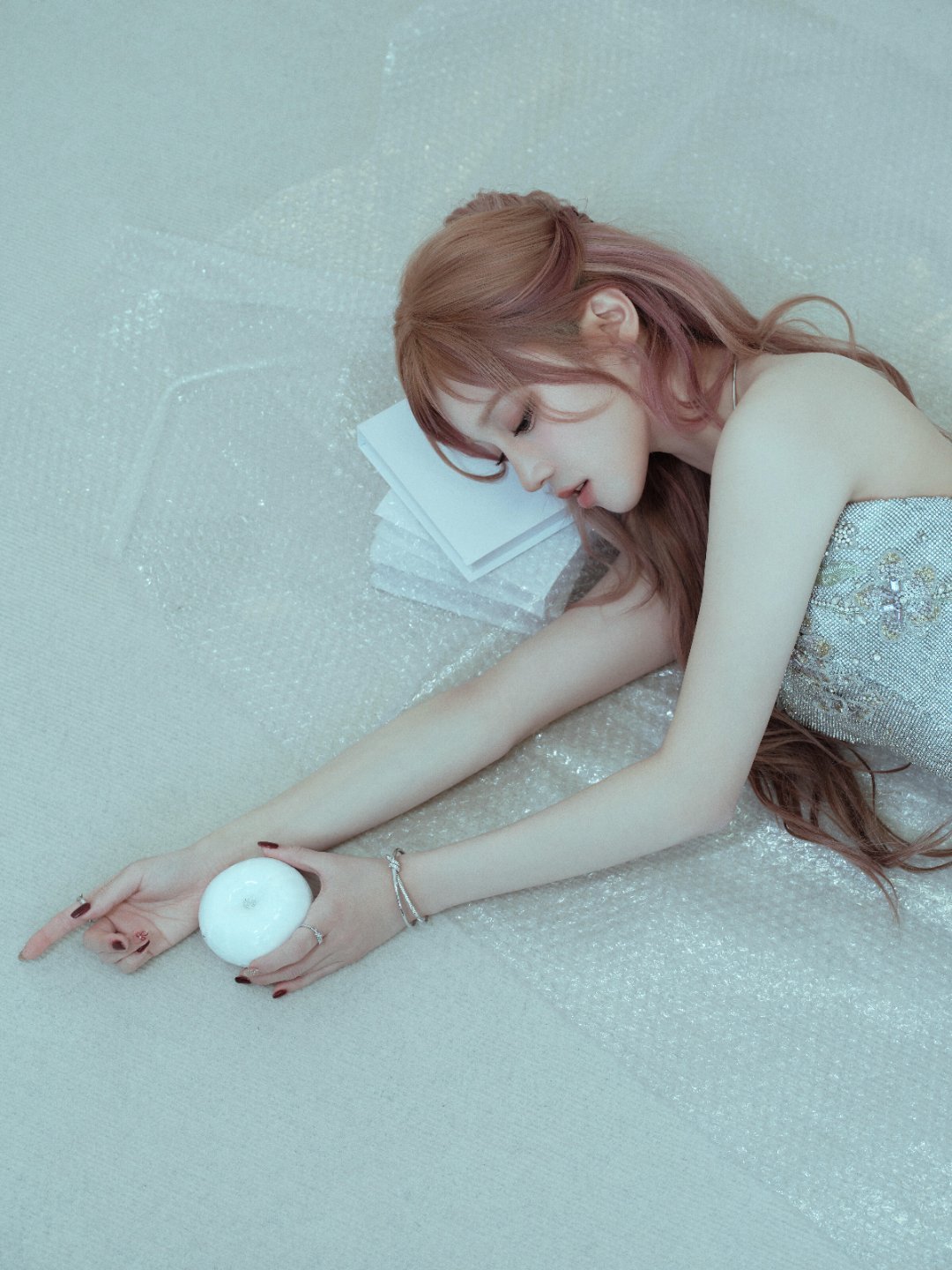 冬日氛围感浅粉发色配纯白斗篷宋雨琦清冷又温柔