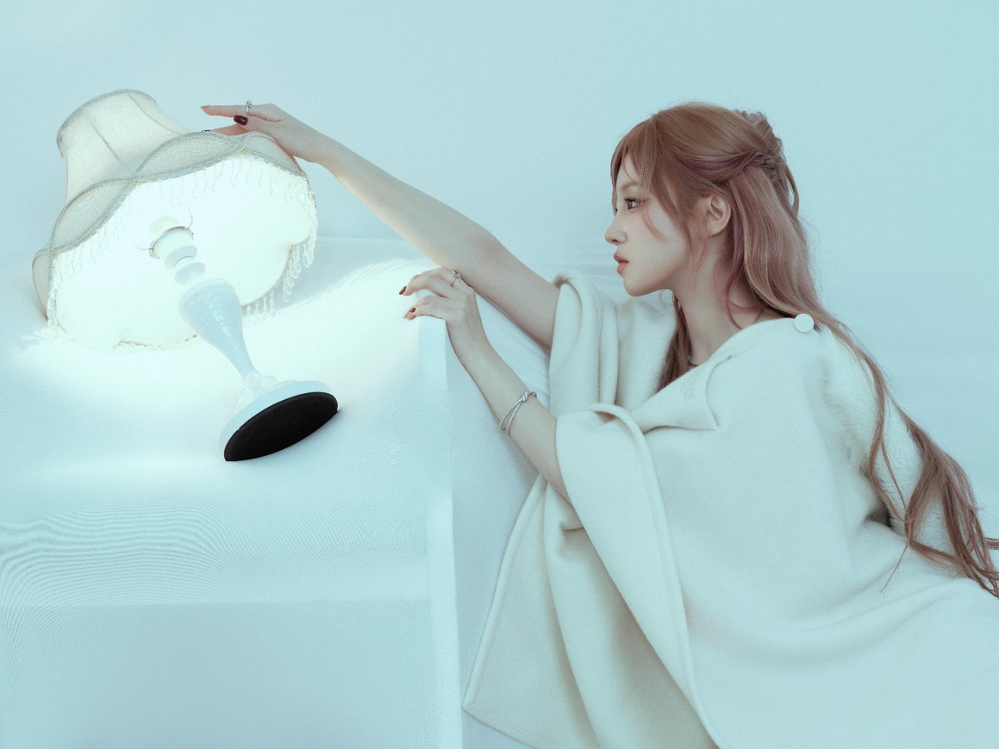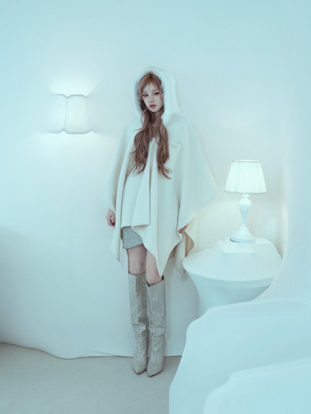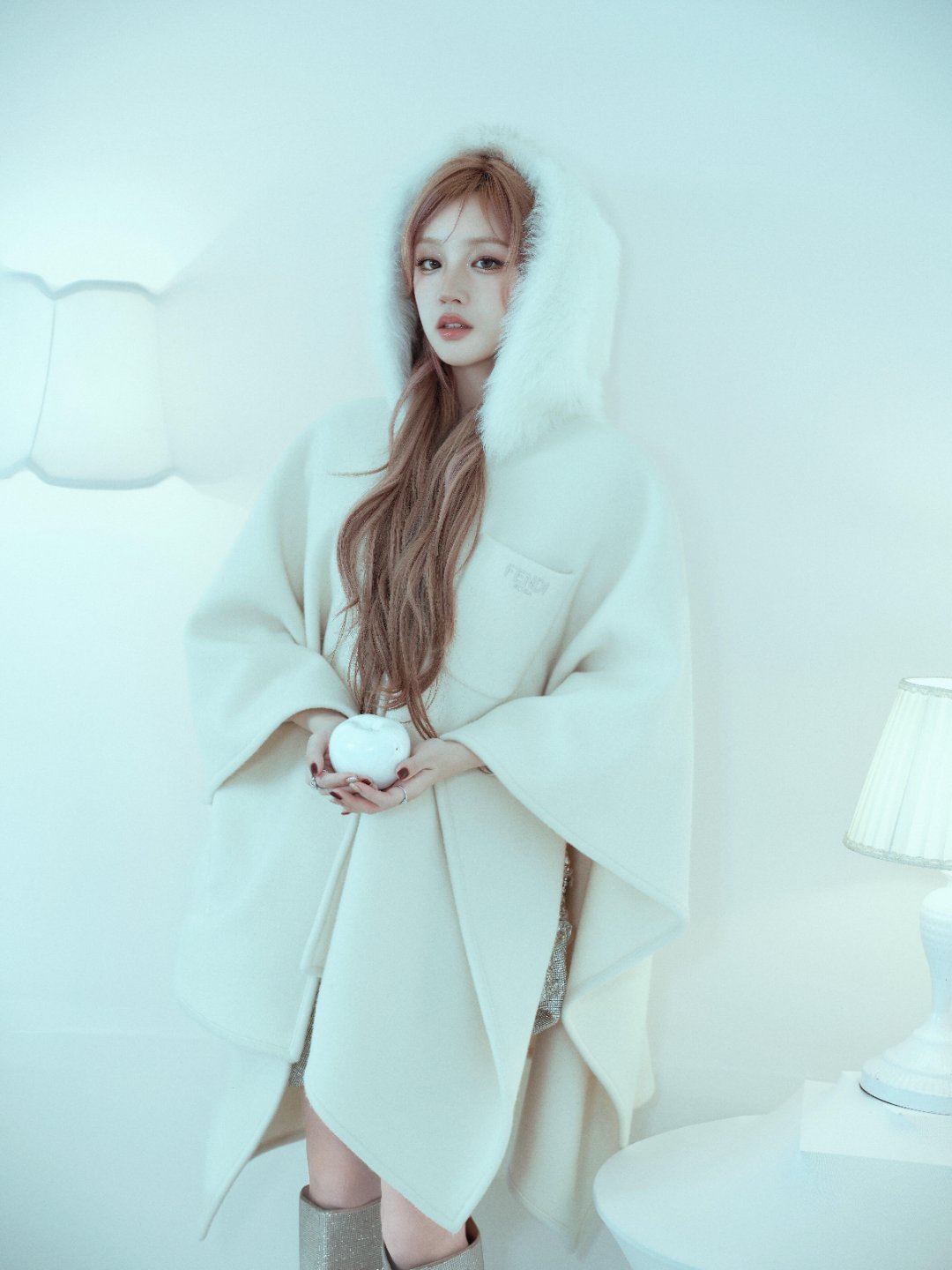 冬日氛围感浅粉发色配纯白斗篷 宋雨琦清冷又温柔