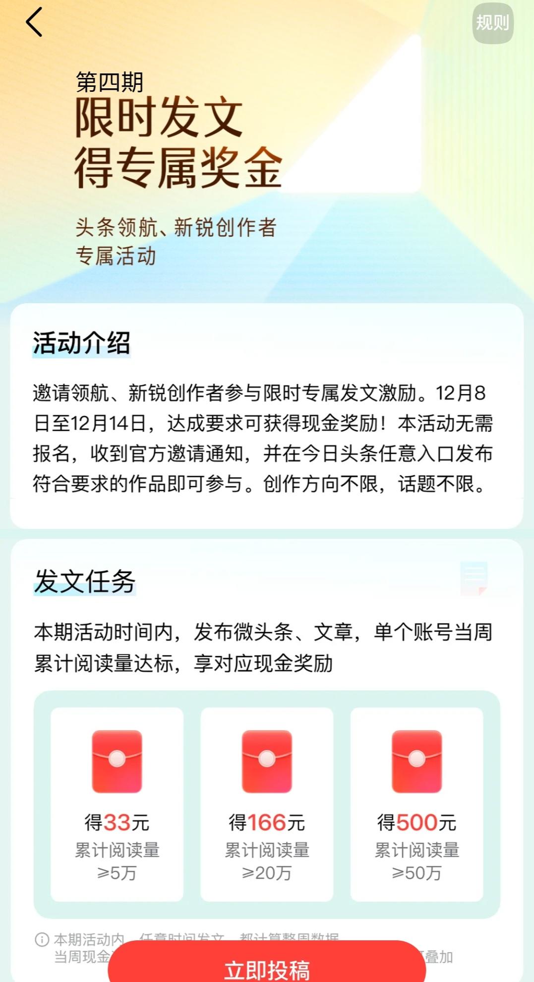 这就叫“擀面杖打飞机——高不可攀”! 单周发文阅读量累计≥5万,得33元;