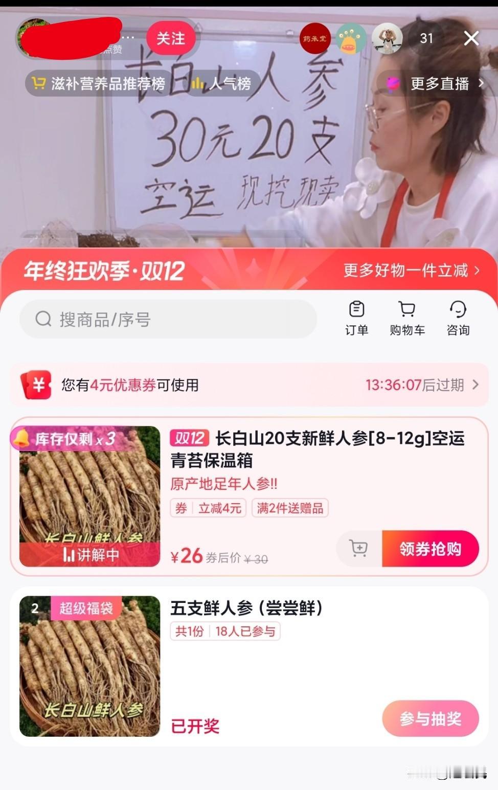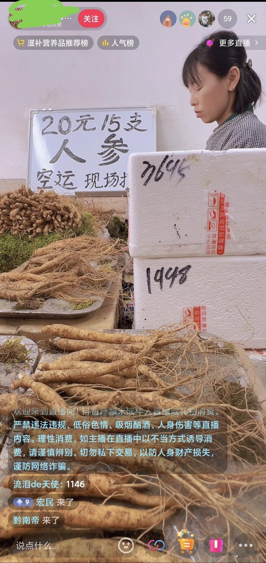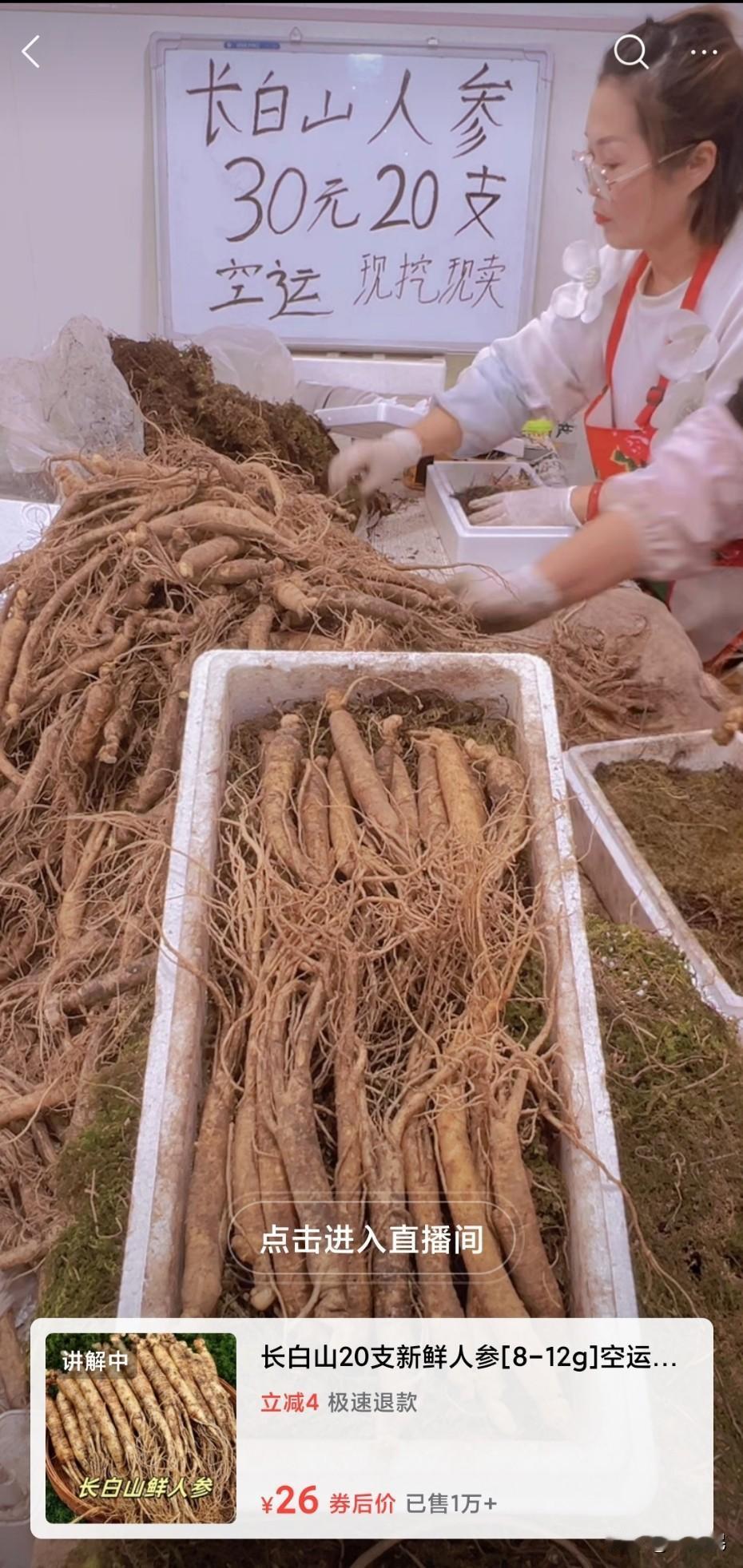现在直播带货都这么发达啊!刚刚偶尔点开了两三个做长白山人参的直播间,里面的人参居然是2块钱一根,26块钱可以买20根。 人参都这么便宜吗?这比萝卜也没贵多少呀! 人参价格要这样的话,以后我就少吃两根萝卜,多吃一根人参了。[允悲] #长白山野鲜人参#