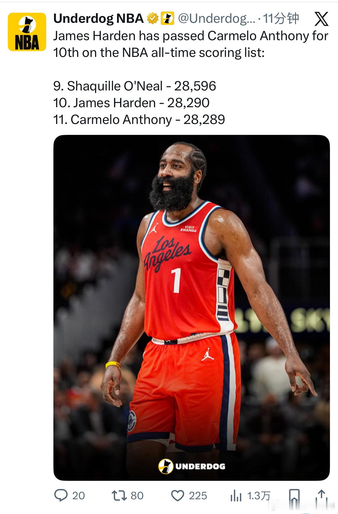 恭喜哈登超越安东尼!总得分来到28290分!跃居NBA历史得分榜第十位🚀🚀哈登历史得分榜第十位休斯敦火箭