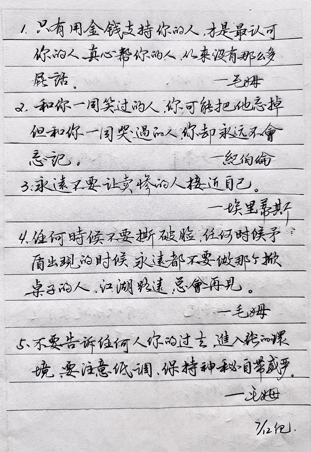 每天抄写练字两年多了,风雨不误[笑] 其实刮风下雨会影响心情的。 得到一个信息:写字好坏和毛笔没有一毛钱关系,几元的毛笔照样可以写一手好字,有挑毛笔的功夫还不如好好读读帖子。 这是一个书法博主说的。 我一直用19元8三支的毛笔,字写得总是不尽人意,原来是本身字不行而非家把事儿不行,明白了!